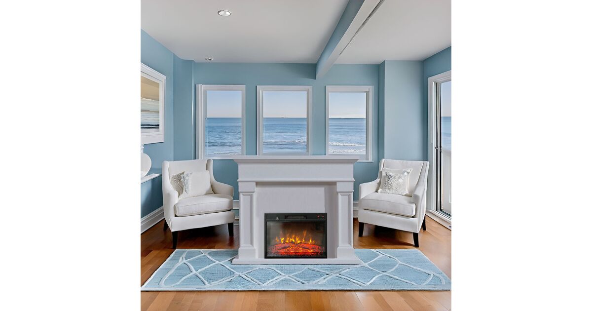 Električni samostojeći kamin, ElectricSun MARISA Bijela, s grijanjem, s plamenom u 3 boja, sa zvukom i mobilnom aplikacijom, Š120xV102 cm s opisom