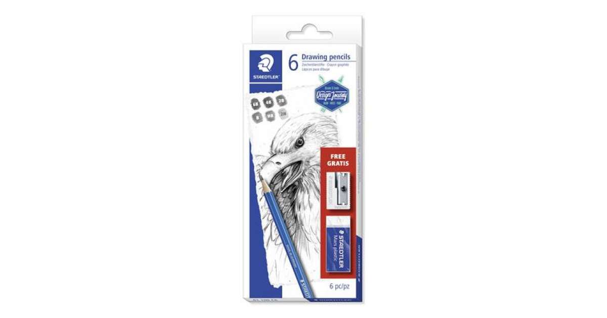 Ovaj STAEDTLER Mars Lumograph 100 set grafitnih olovaka ima sve što ti treba za tvoje sljedeće remek-djelo! Set sadrži 6 olovaka različite tvrdoće (2H, HB, B, 2B, 4B, 6B), oštricu i gumicu, sve u praktičnom pakiranju.