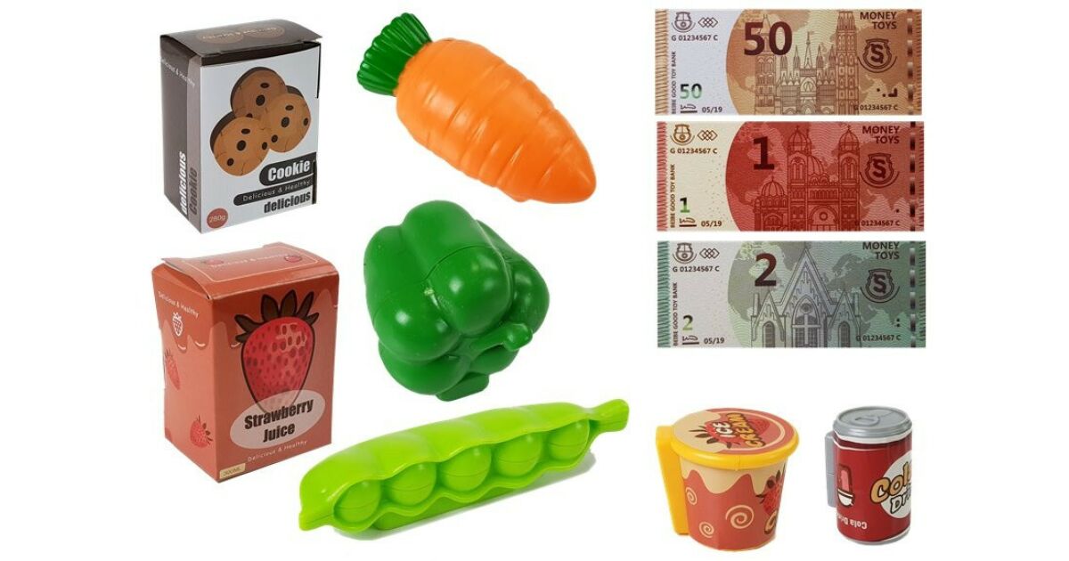 - 🍎 Dodaci: Paket uključuje imitacije hrane (povrće, voće, proizvodi u kutijama) i košaricu za kupovinu, što igru čini još realnijom.