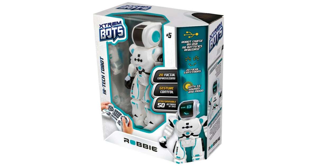 Upoznaj se s Robbie Botom - pametnim robotom! Isprobaj svih 50 programskih funkcija i prati s kojim će od 20 različitih osjećaja tvoj novi prijatelj reagirati kroz svoje LED oči. Krenite zajedno uzbudljivim stazama i pomoću pokreta ruke pokaži gdje da izbjegne opasna mjesta. Ne brini, tvoji će pokreti uvijek biti precizno prepoznati! Robbie Bot - pametni robot puni se USB kabelom. Dimenzije proizvoda: 10,5 x 11 x 31 cm. Igračka nije preporučljiva za djecu mlađu od 5 godina.