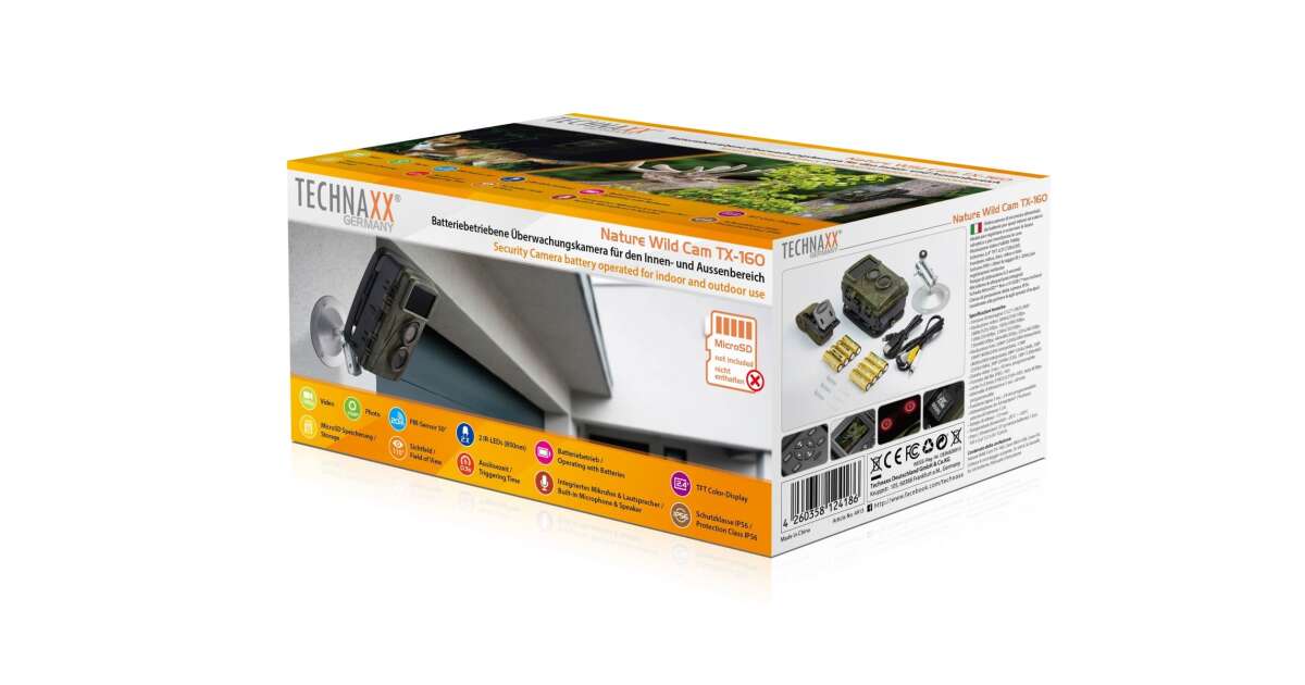 Wildcam Technaxx TX-160 nadzorna kamera, FullHD 1080p, 2.4" TFT LCD ekran, PIR senzor, IR, IP56, microSD, mikrofon, zvučnik, 8xAA/6V 1.5A, kamuflaža