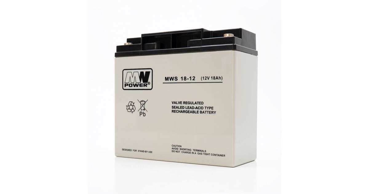 PNI-ACC1812 - AGM baterija MW 18-12S 12V / 18Ah Značajke baterije Kapacitet 18Ah Nazivni napon 12V Dimenzije/Težina 181 x 77 x 167 mm 5,25 kg Vrsta baterije AGM VRLA Radna temperatura -20ºC...+50ºC Ostalo Priključci Priključci: M5 (T13) Vijak i matica M5 (T3) - F Unutarnji otpor (potpuno napunjena baterija) = 17 mΩ