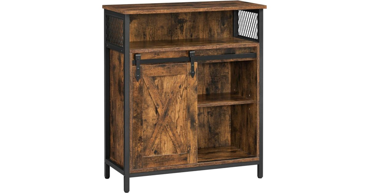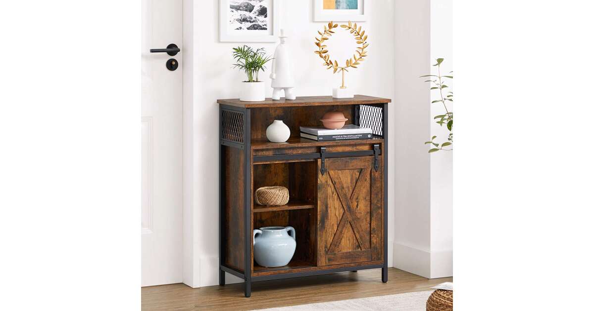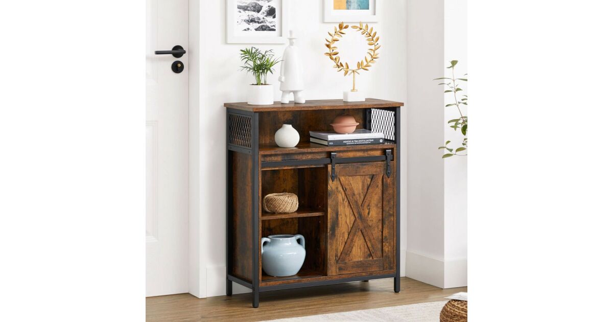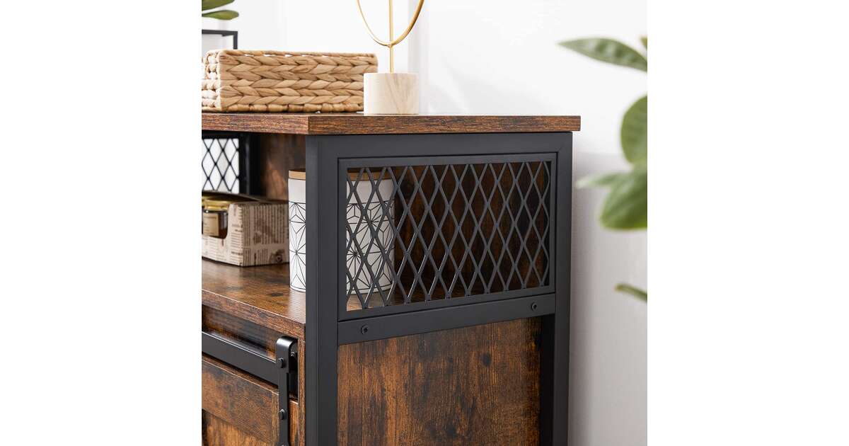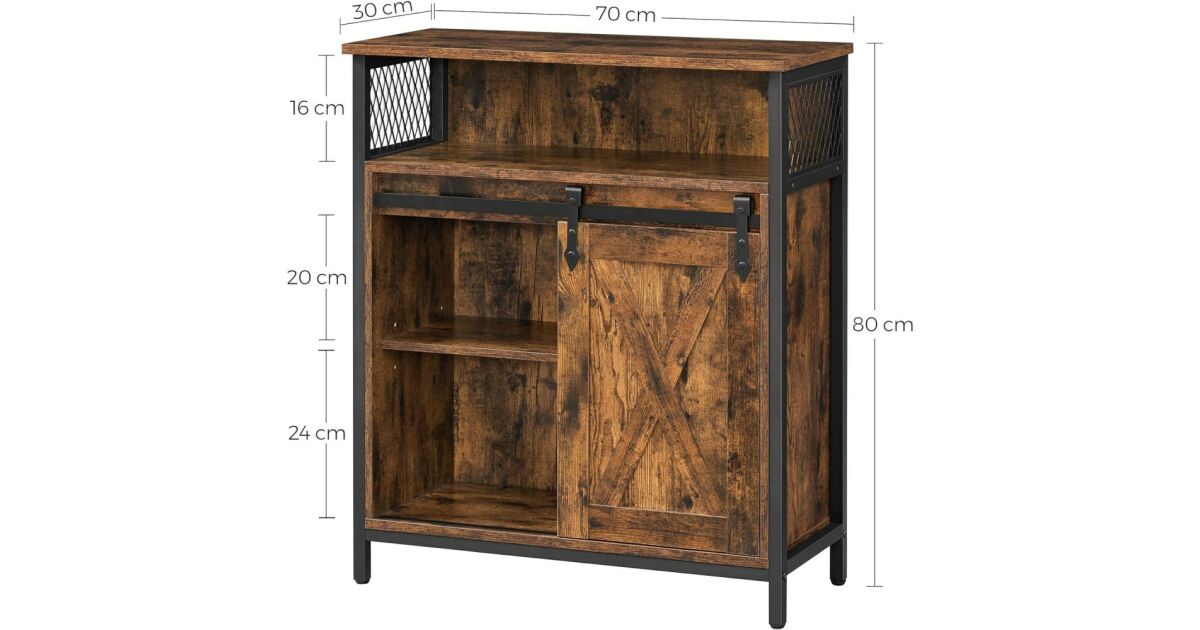 Ovaj ormarić za pohranu u rustikalnoj smeđoj i crnoj boji industrijskog stila idealno je rješenje za pohranu stvari u kuhinji, hodniku, dnevnom boravku ili radnoj sobi. Praktična klizna vrata i podesive police osiguravaju maksimalan kapacitet pohrane.