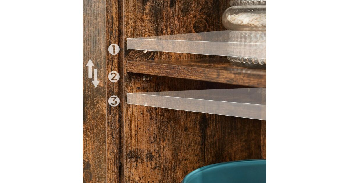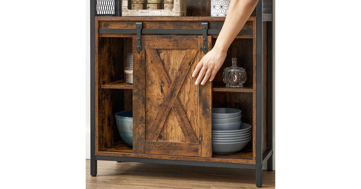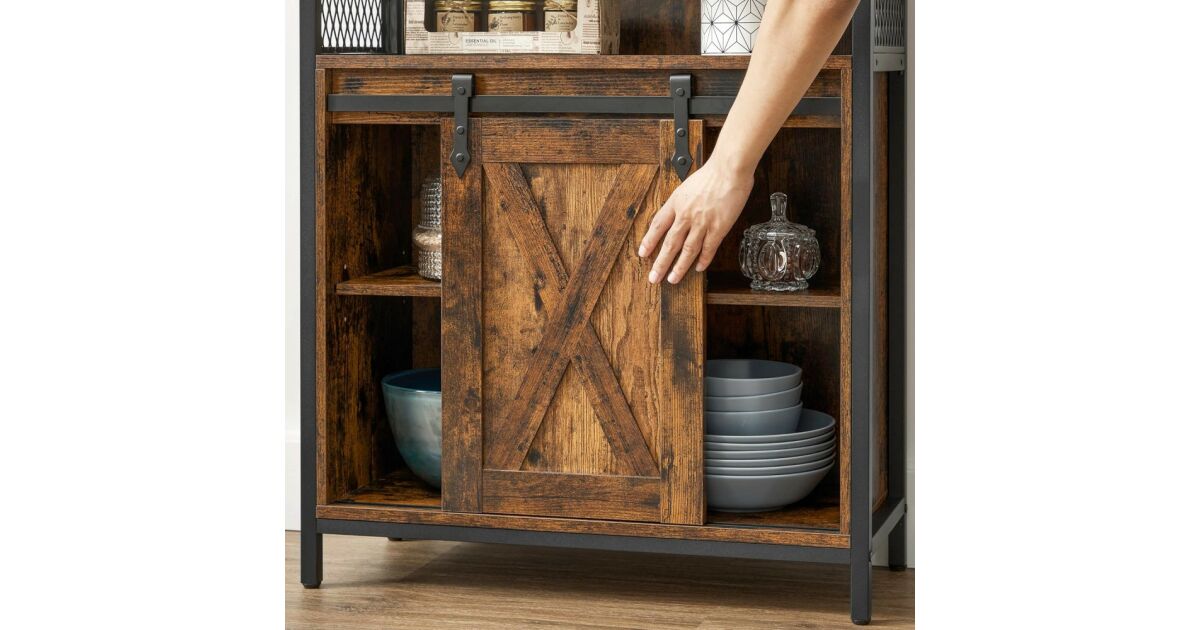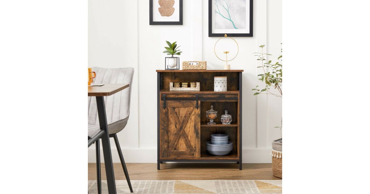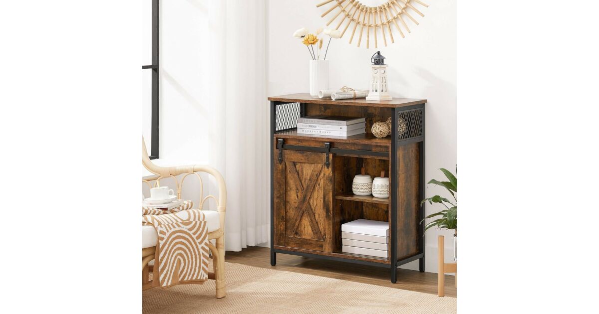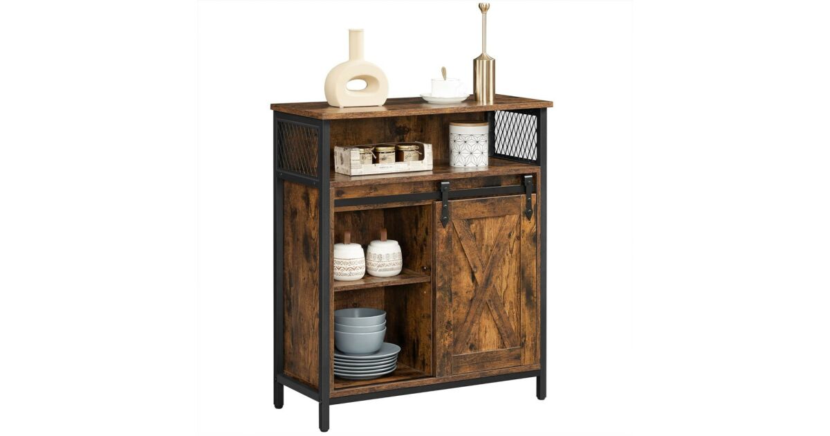 Ovaj ormarić za pohranu u rustikalnoj smeđoj i crnoj boji industrijskog stila idealno je rješenje za pohranu stvari u kuhinji, hodniku, dnevnom boravku ili radnoj sobi. Praktična klizna vrata i podesive police osiguravaju maksimalan kapacitet pohrane.