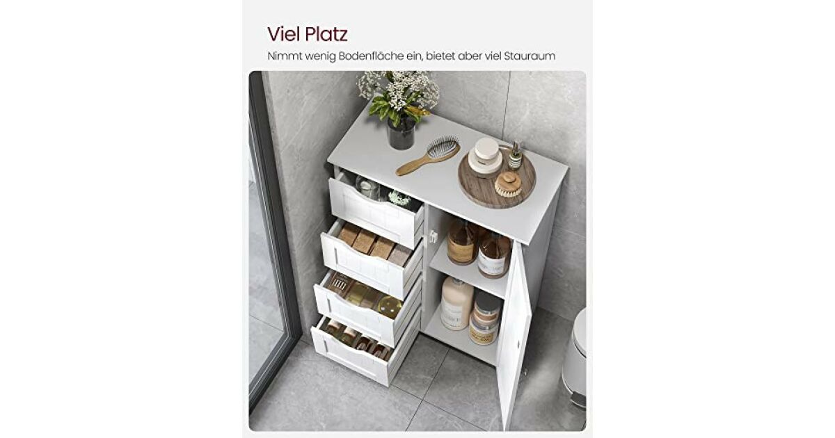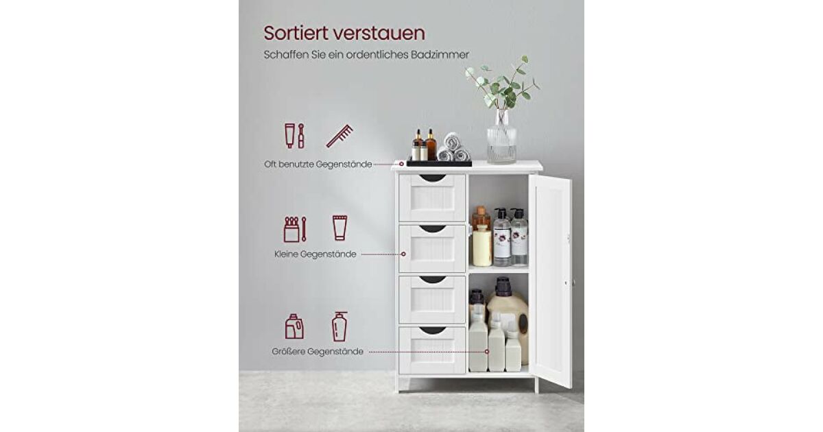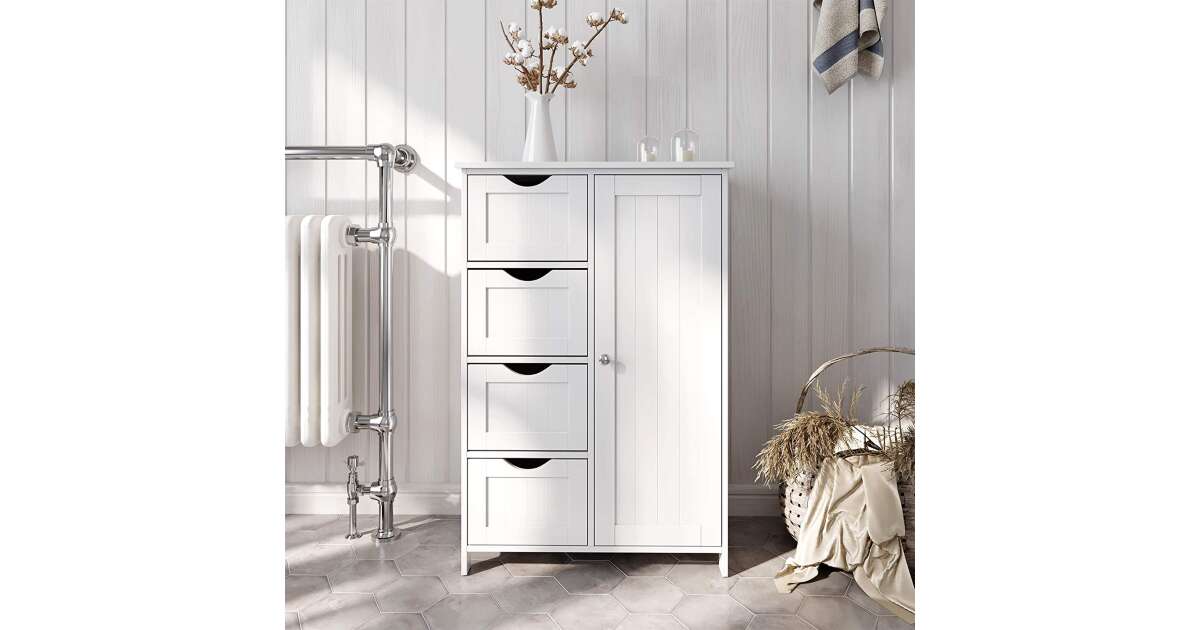 Kupaonski podni ormarić s 4 ladice i skrivenim policama, 55 x 30 x 81 cm, bijeli | VASAGLE s opisom