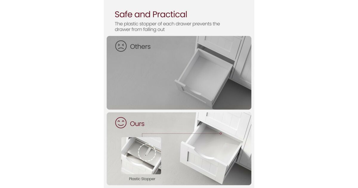 - Stabilnost i sigurnost: Izrađen od vlaknaste ploče visoke čvrstoće, ovaj ormarić osigurava dugi vijek trajanja. Set protiv prevrtanja pruža dodatnu sigurnost. 💪