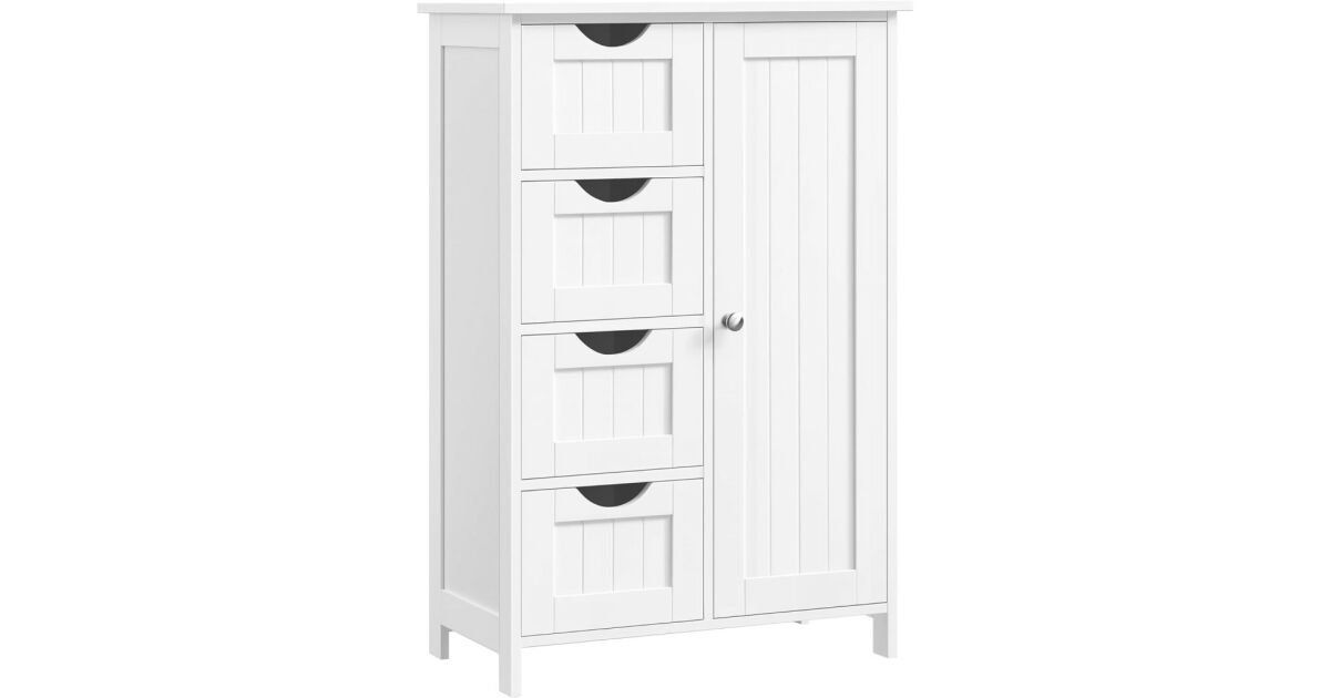 Kupaonski podni ormarić s 4 ladice i skrivenim policama, 55 x 30 x 81 cm, bijeli | VASAGLE