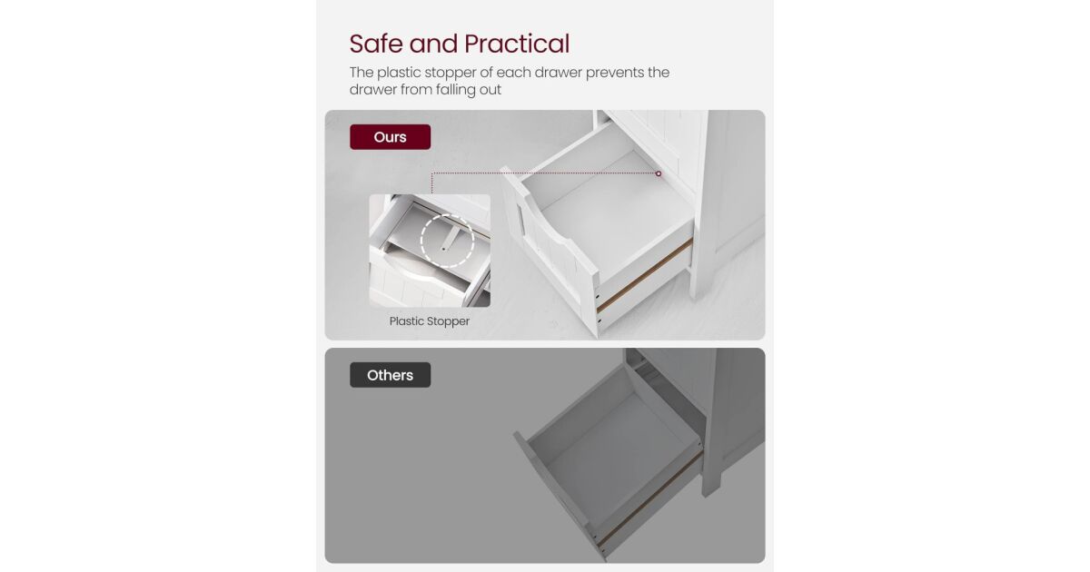 Stabilan i siguran: Ormarić je izrađen od MDF ploče, što jamči stabilnost i trajnost. Ugrađena zaštita od prevrtanja pruža dodatnu sigurnost.