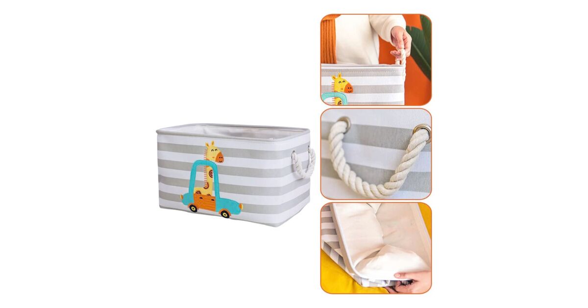 Sklopiva kutija za pohranu za igračke, odjeću i kozmetiku, s udobnim ručkama, za dječju sobu, spavaću sobu i dnevni boravak – žirafa s opisom