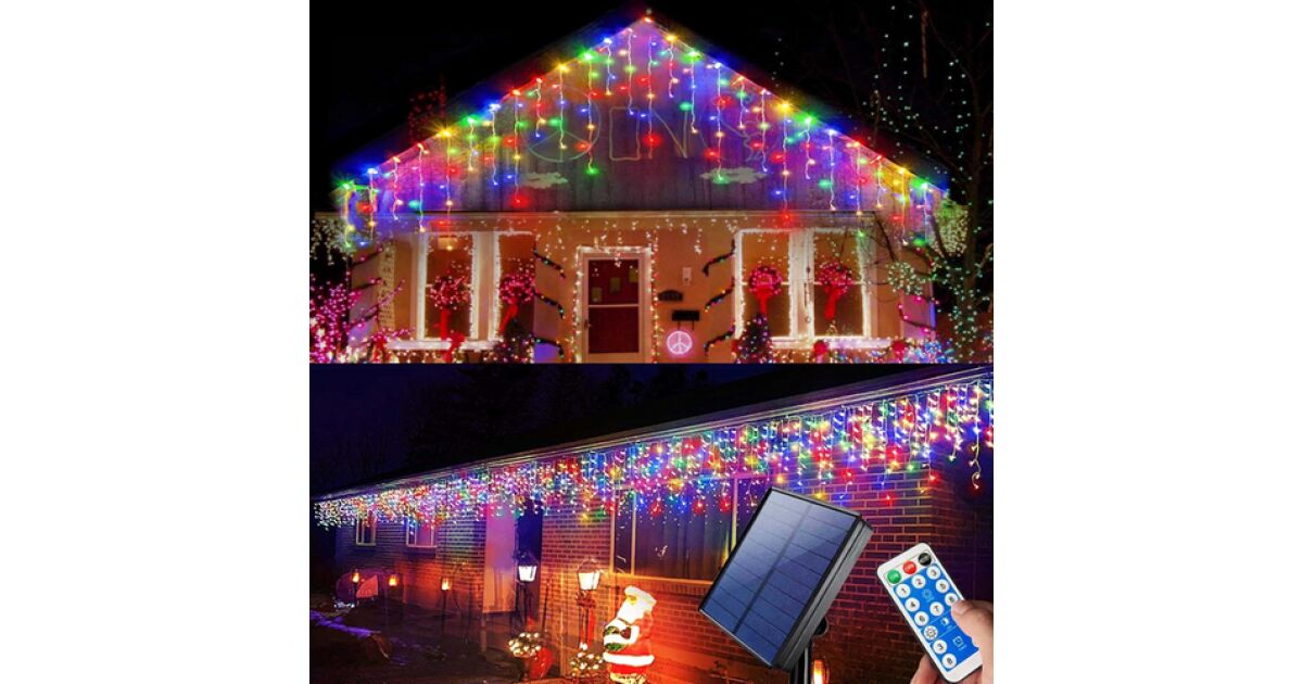 15,6 m 480 LED svjetlosnih nizova u obliku ledenice, hibridnih punjivih i solarnih, šarenih RGB, 13 načina osvjetljenja, timer, daljinski upravljač mišljenja
