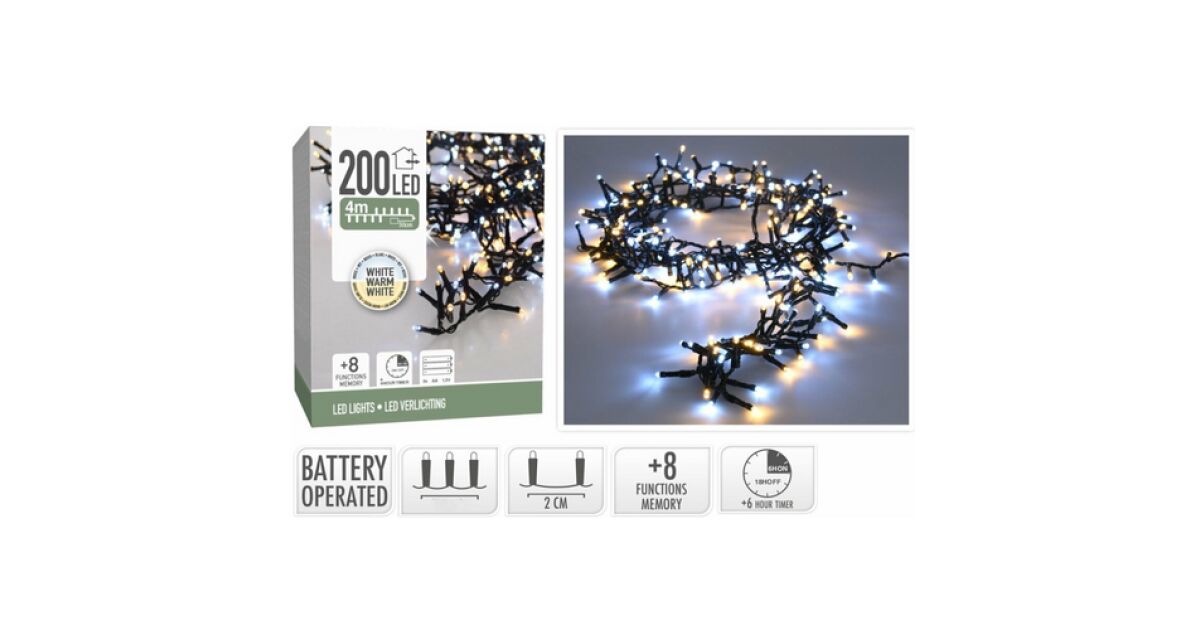200 LED BOA svjetlosni niz za vanjsku i unutarnju upotrebu, na baterije, hladno-toplo bijela, 8 načina osvjetljenja, upravljanje timerom, 4 m, IP44