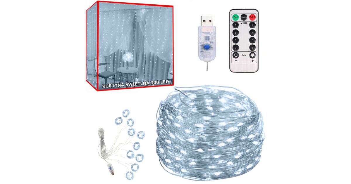 300 mikro LED USB svjetlosna zavjesa za unutarnju upotrebu, 8 načina osvjetljenja, daljinski upravljač, hladno bijela