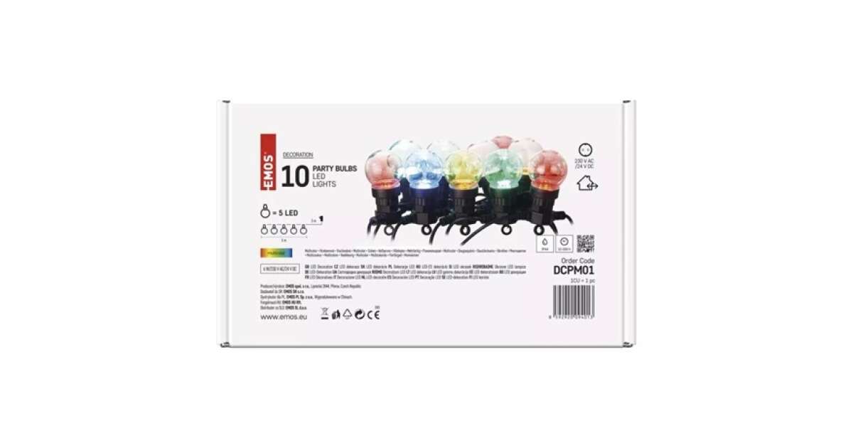-LED svjetlosna zavjesa - 10x party žaruljica, 5 m, za unutarnju i vanjsku uporabu, višebojna (DCPM01) s opisom