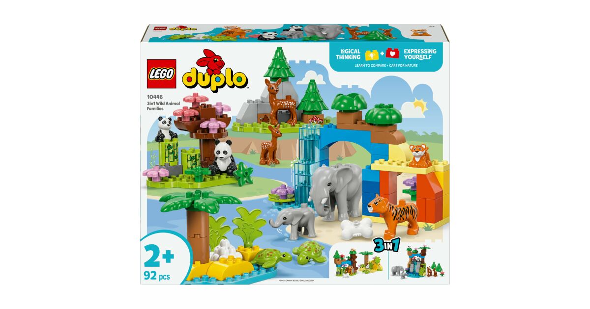 LEGO® DUPLO® 3 u 1 Divlje Životinjske Obitelji (10446): Edukativna igračka za djecu od 2 godine 🐘🐼🐅