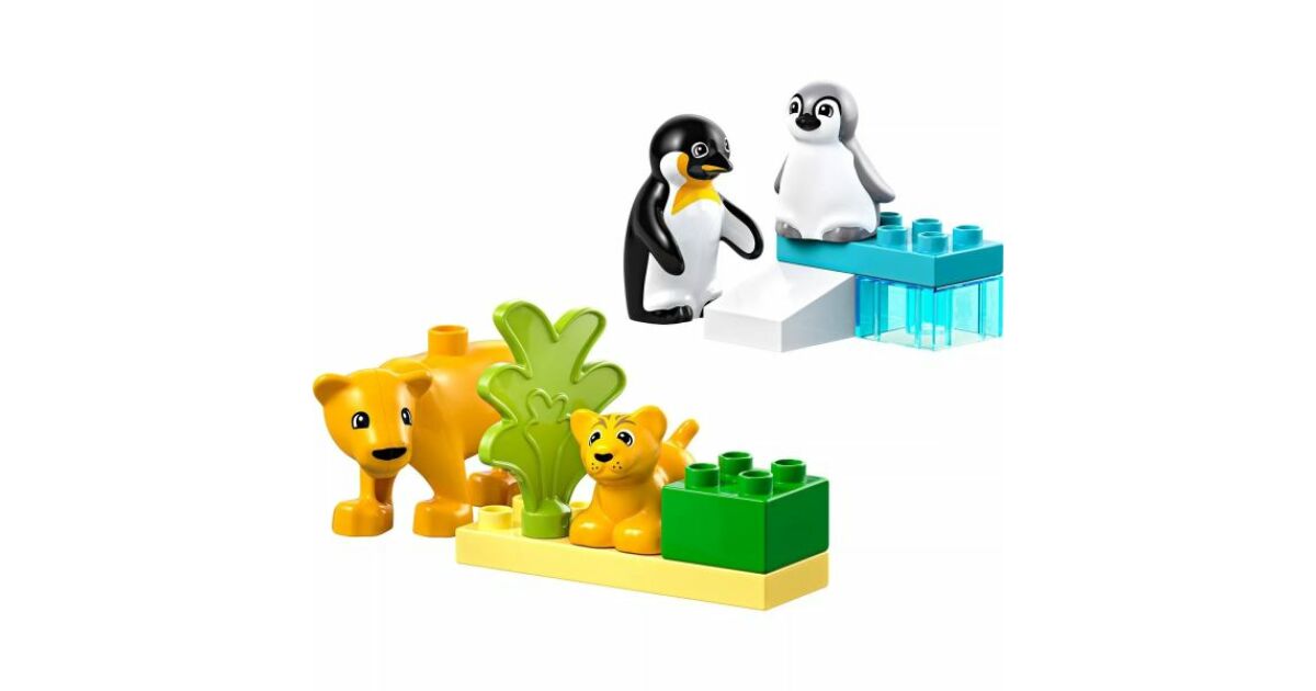 - 4 preslatke LEGO® DUPLO® životinjske figurice: pingvin roditelji i mladunče, mama lavica i mladunče