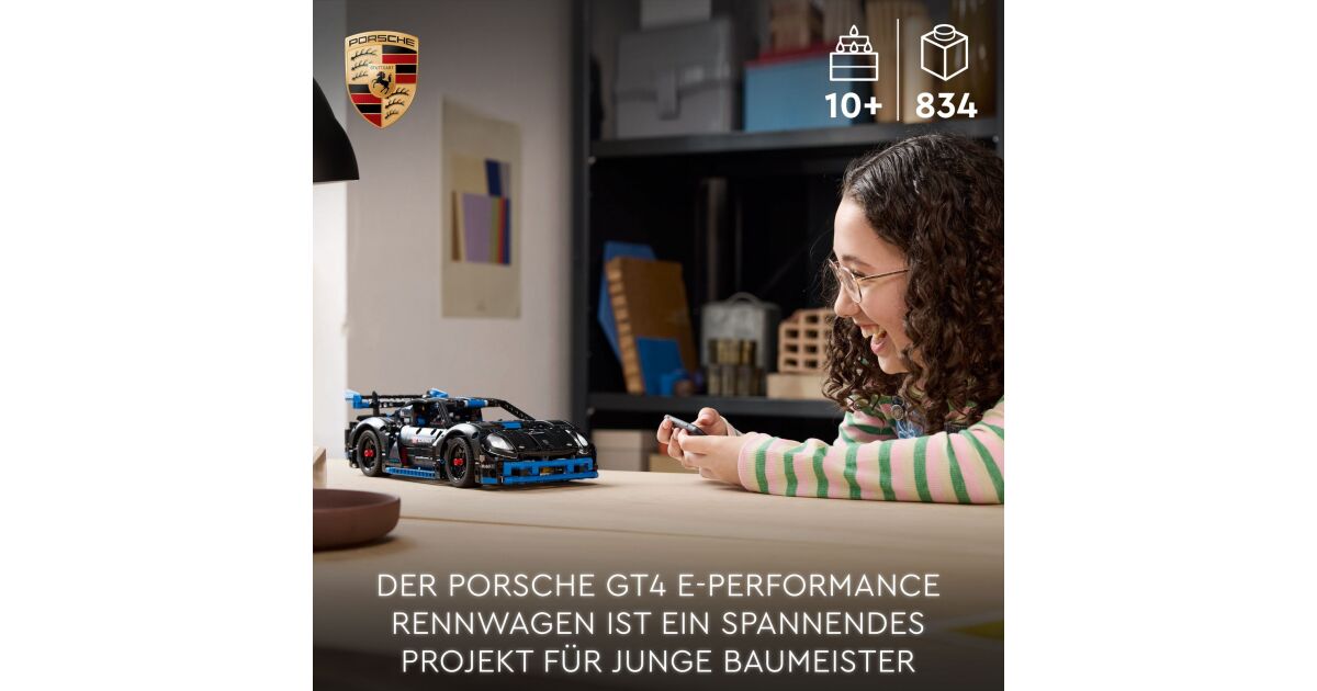 Pripremi se za uzbudljivu avanturu gradnje s ovim LEGO Technic Porsche GT4 e-Performance trkaćim automobilom od 834 dijela! Preporučuje se za djecu od 10 godina, ovaj model nije samo impresivan za gledati, već je i interaktivna igračka. Pomoću CONTROL+ aplikacije možeš upravljati volanom, svjetlima i pratiti podatke o performansama automobila. 🚀