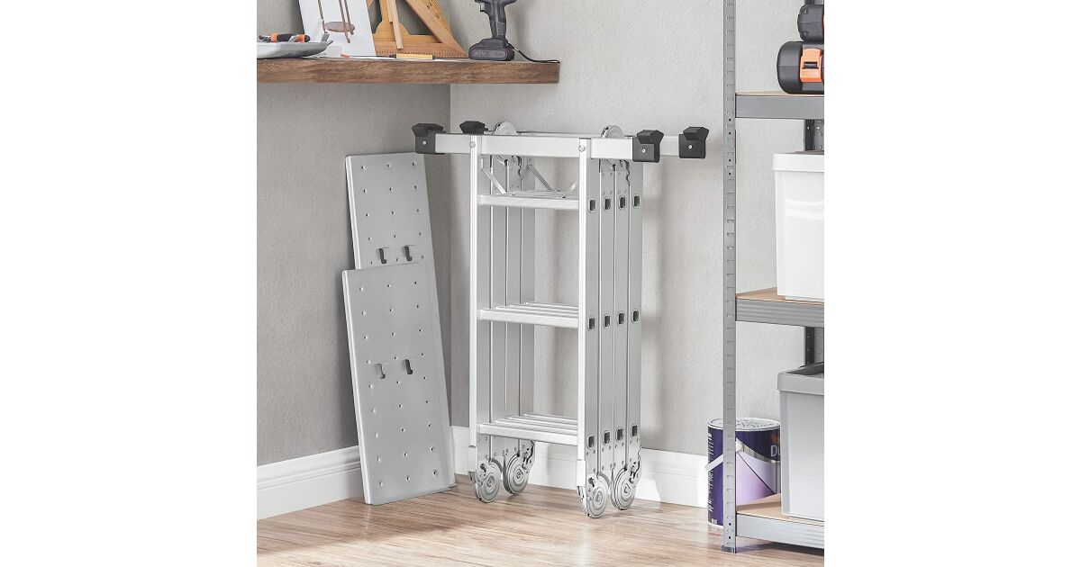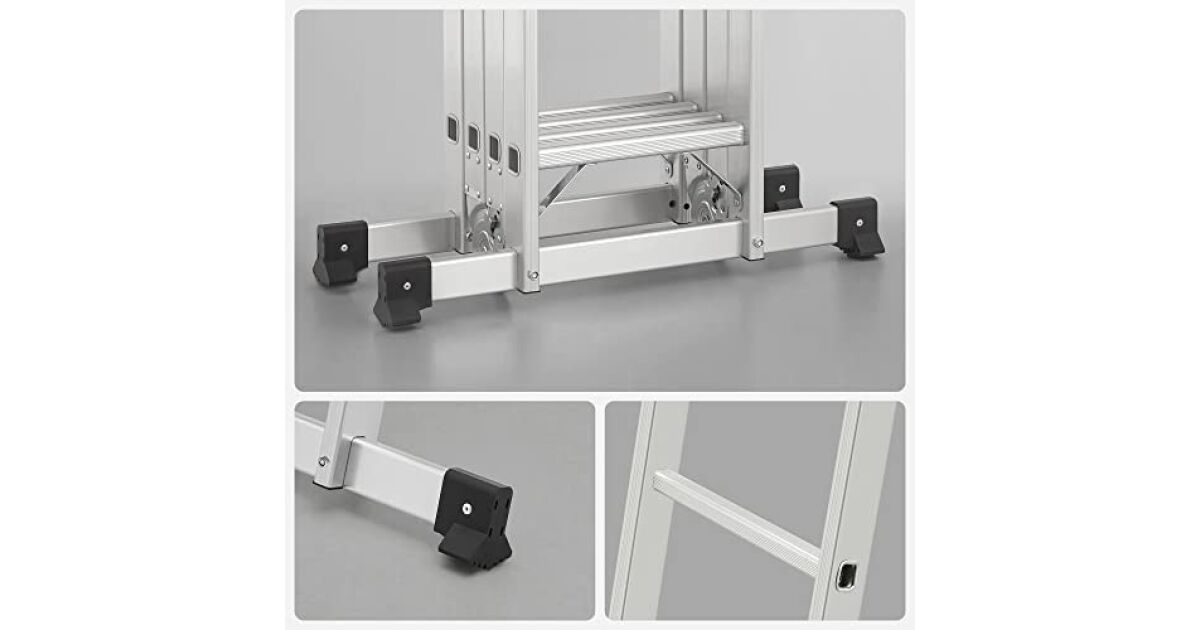 Aluminijske, zglobne, višenamjenske ljestve sa 12 stepenica, srebrne | SONGMICS s opisom