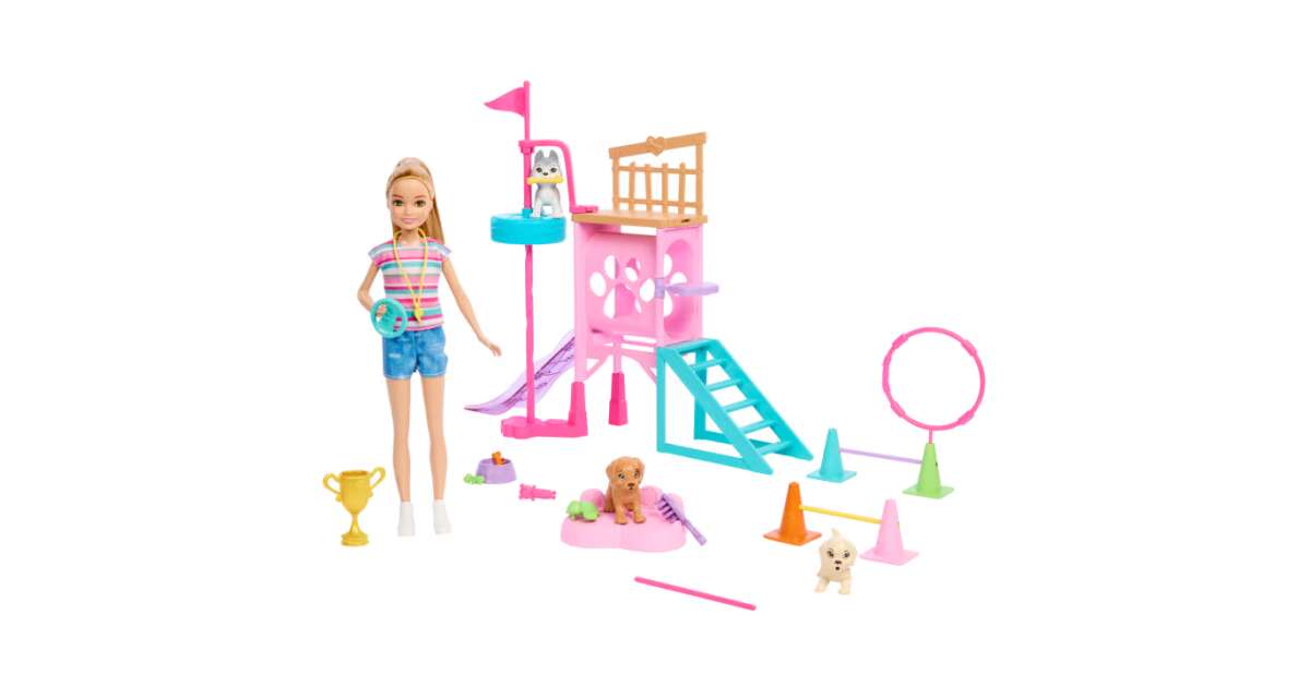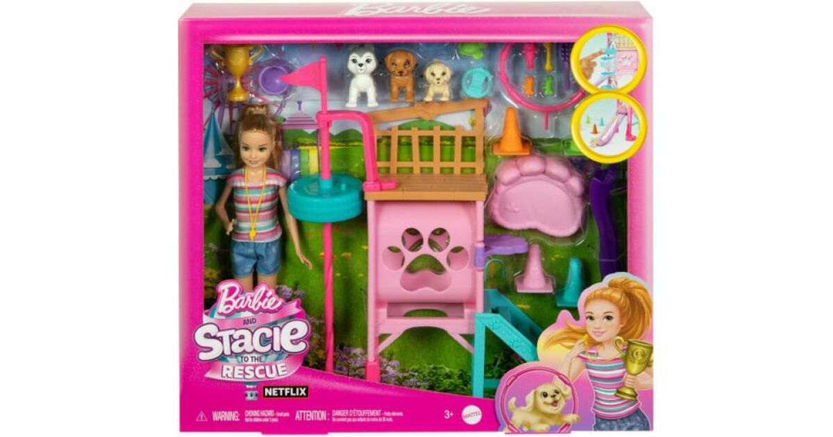 Ovaj fantastični Barbie Škola za pse Igraći Set sadrži više od 20 dijelova, što osigurava satima zabave za djecu! Čekaju te Stacie lutka i tri preslatka štenca da zajedno istražite uzbudljivu stazu s preprekama u školi za pse.
