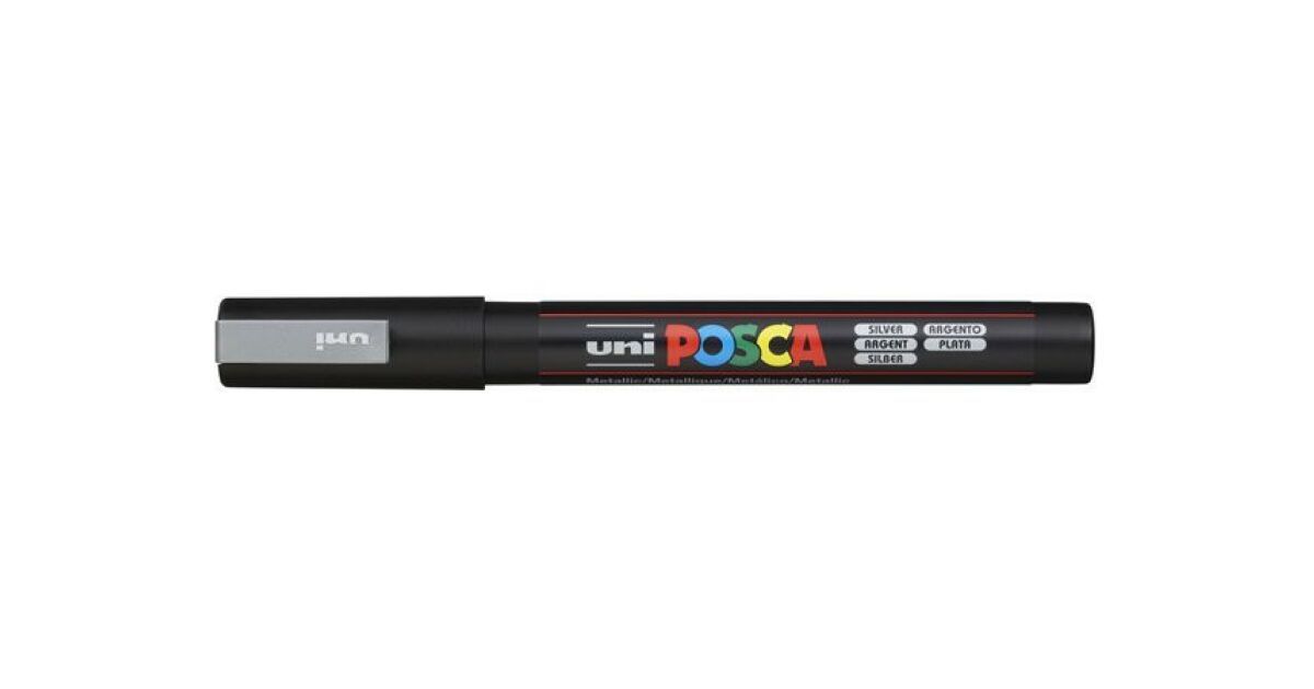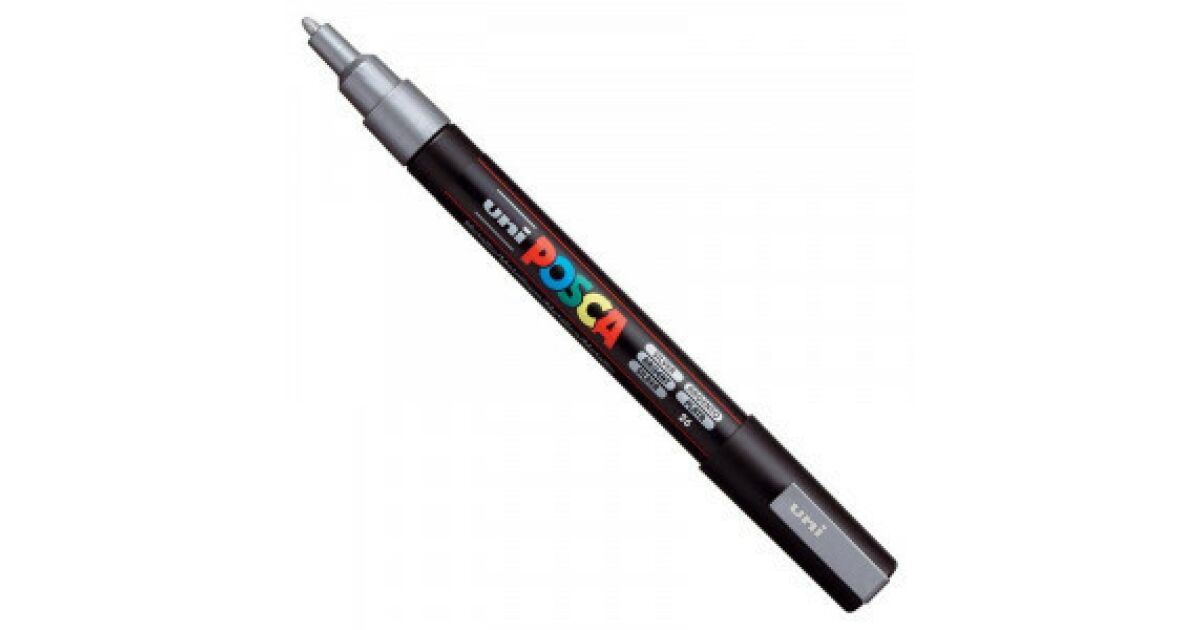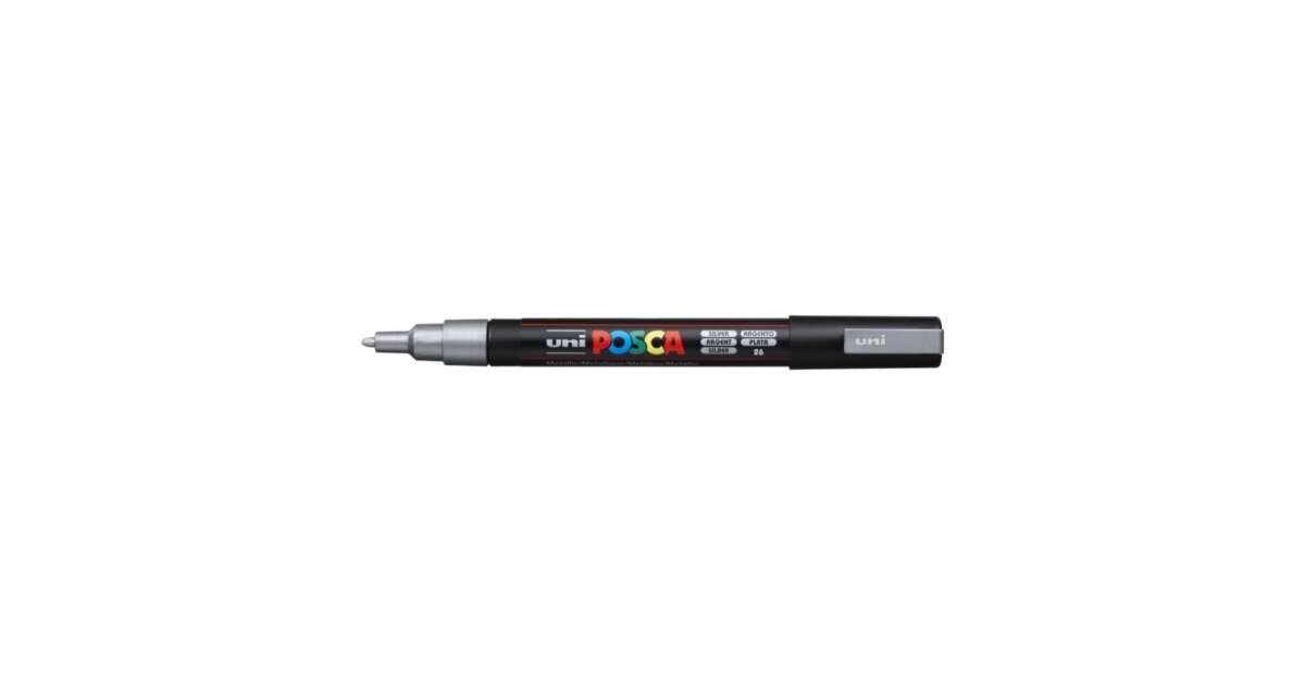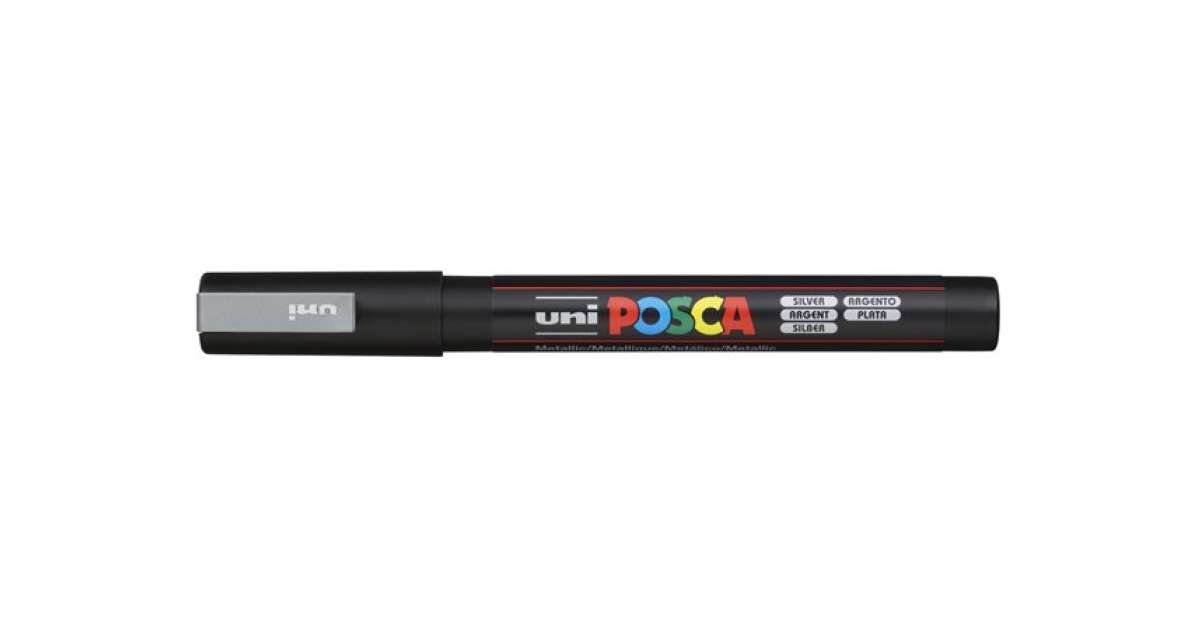 Ovaj srebrni UNI Posca PC-3M dekor marker idealan je izbor za sve kreativne duše! Titanijeva dioksidna tinta, visoke pokrivne moći i na bazi vode, nakon sušenja je vodootporna i kemijski inertna, tako da slobodno možeš crtati po papiru, metalu, drvu, staklu, plastici, porculanu, keramici i tekstilu. 😉
