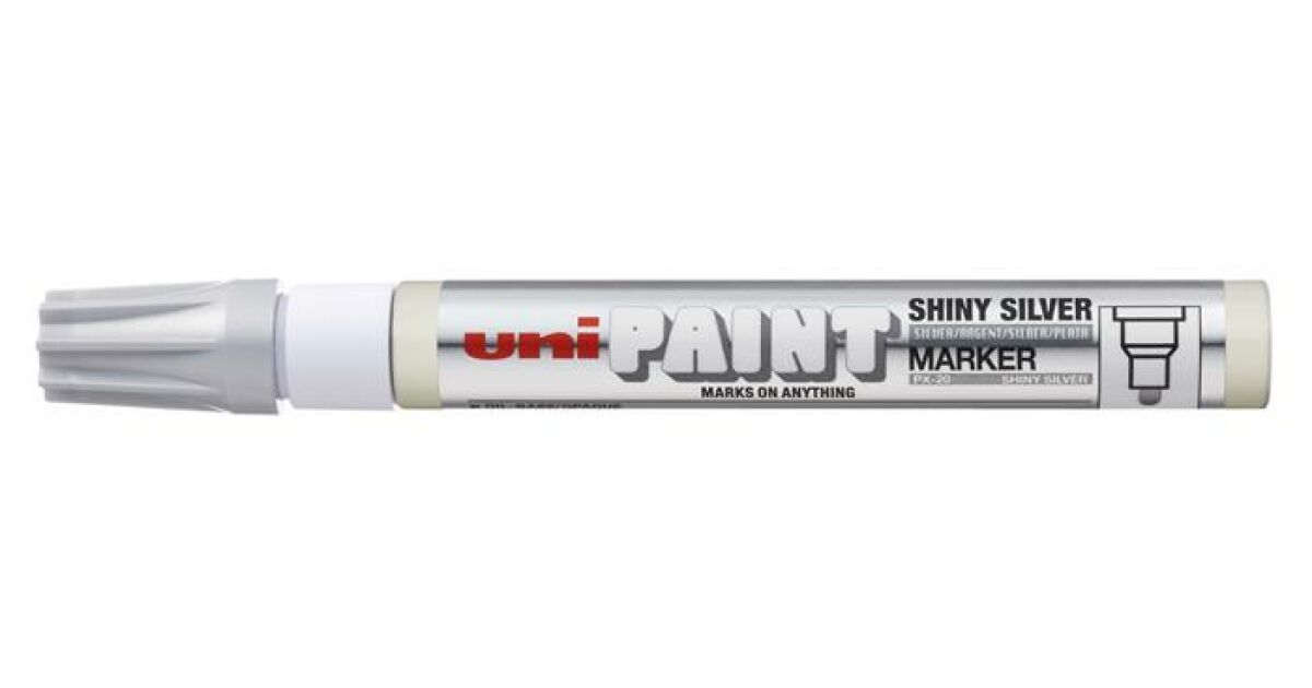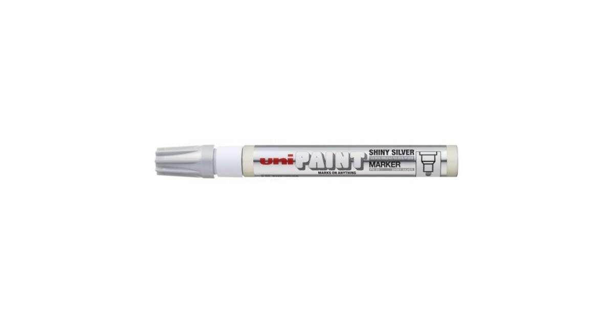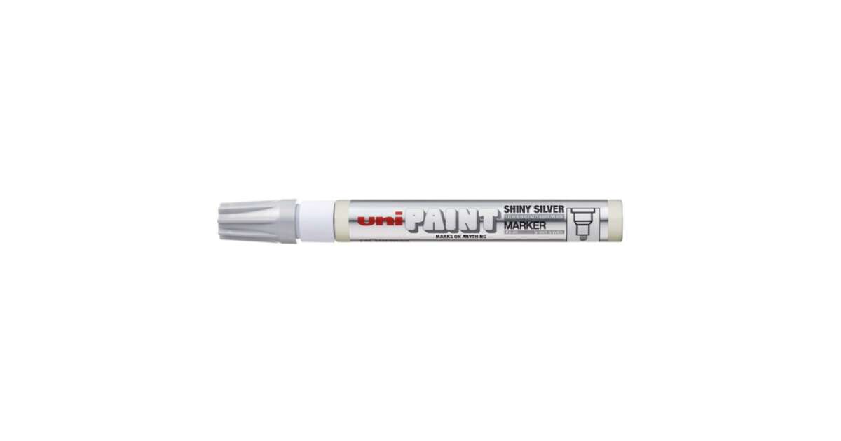 Ovaj UNI PAINT lak marker je savršen izbor ako želiš napraviti trajan, sjajno srebrni znak na gotovo bilo kojoj površini. Visokokvalitetna, uljna tinta je otporna na vodu, toplinu i UV zrake, tako da će tvoji znakovi dugo zadržati svoju ljepotu.