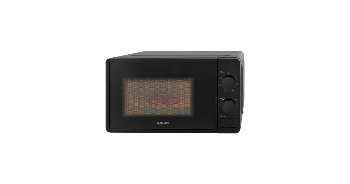 -Mikrovalna pećnica Bomann, MW6014CBN, 700 W, 20 litara, 6 razina snage, odmrzavanje, grijanje, timer, zvučni signal, unutarnje osvjetljenje, rotirajući tanjur 24,5 cm, lako čistiv unutrašnjost, crna