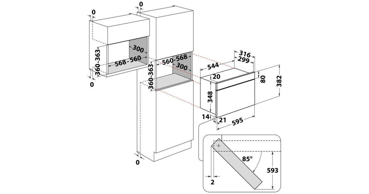Whirlpool MBNA920B Ugradna mikrovalna pećnica, 22L, 750W, JetDefrost, Quartz grill, Crna s opisom