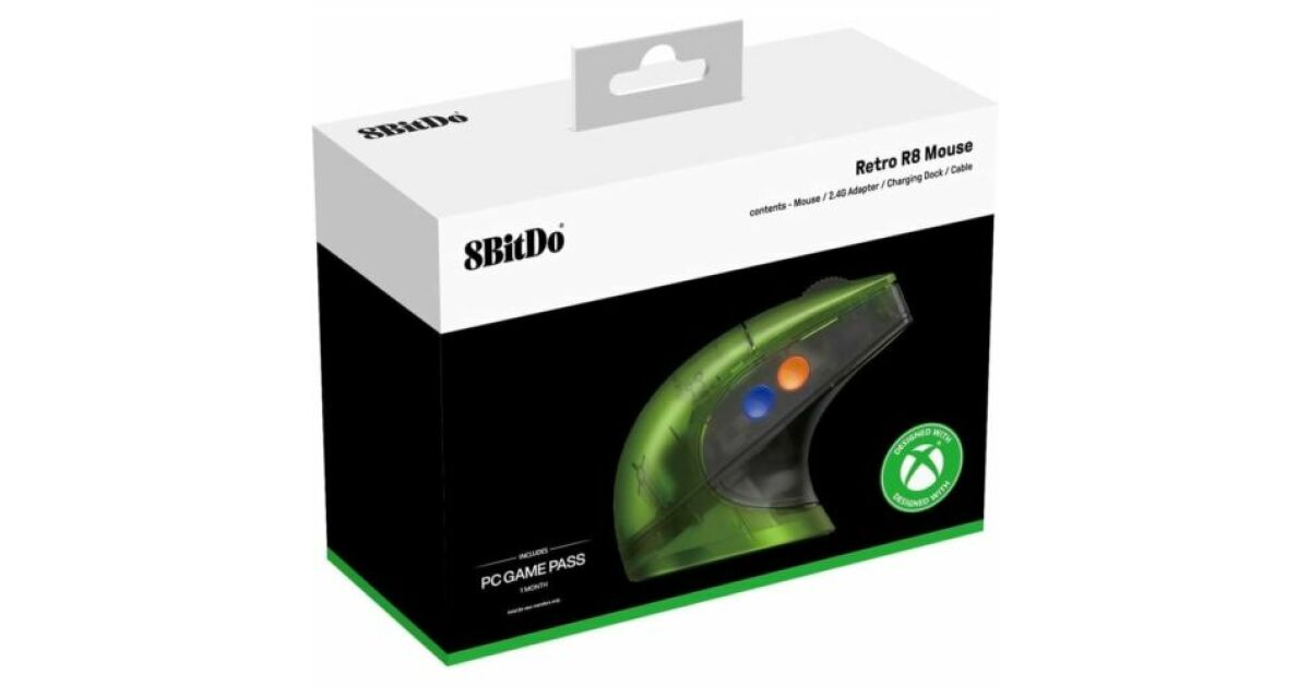 8BitDo Retro R8 miš – Xbox Edition je vrhunski žičani i bežični miš koji podsjeća na prozirni zeleni dizajn klasične Xbox konzole, a istovremeno nudi moderne performanse i prilagodljivost za one koji svoj uređaj koriste i za posao i za igru.