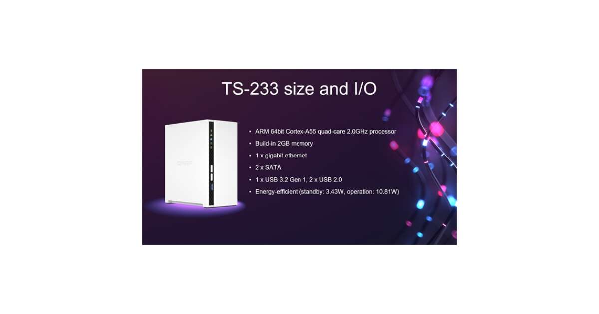 QNAP NAS 2-bay 4x2GHz, 2GB RAM, 1x1000Mbps, 2xUSB3.2, 2xUSB2.0, 1xUSB3.2 - TS-233 s opisom
