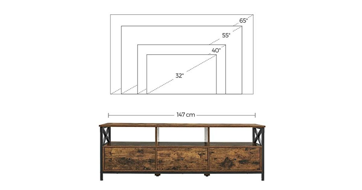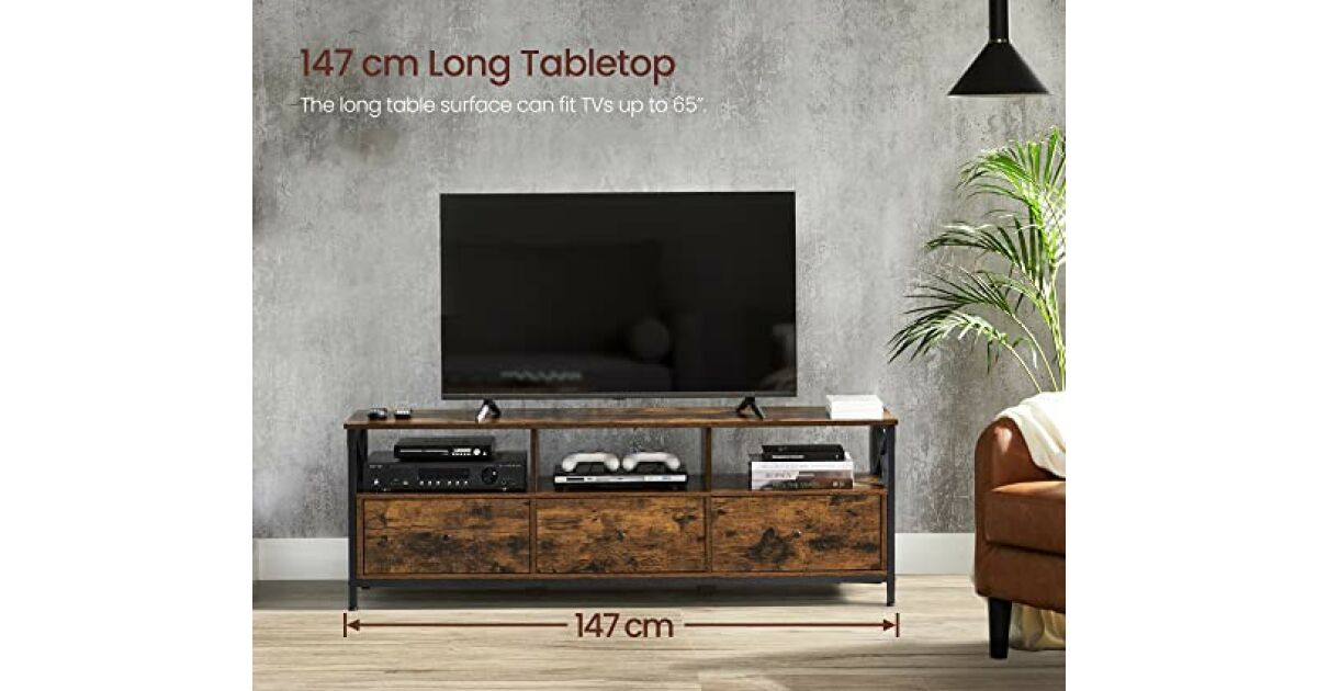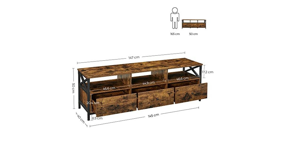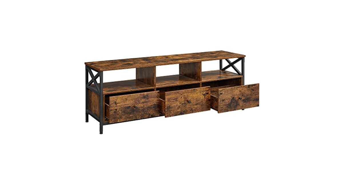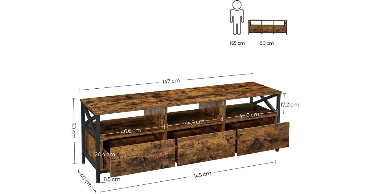 TV stalak s 3 ladice i policama za odlaganje, 147 x 50 x 40 cm, rustikalni | VASAGLE s opisom