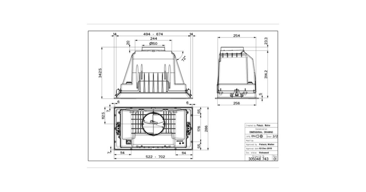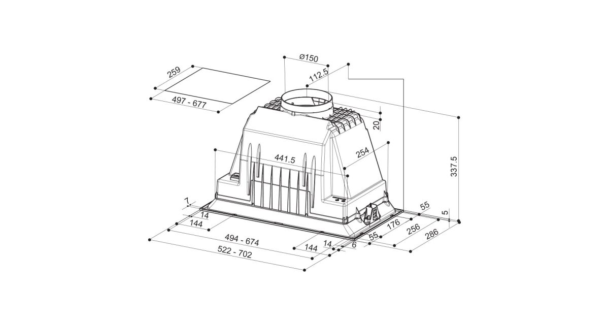 Faber INKA PLUS HCS BK A52 Ugradbena napa, 590 m3/sat, 3 brzine, Energetski razred B s opisom