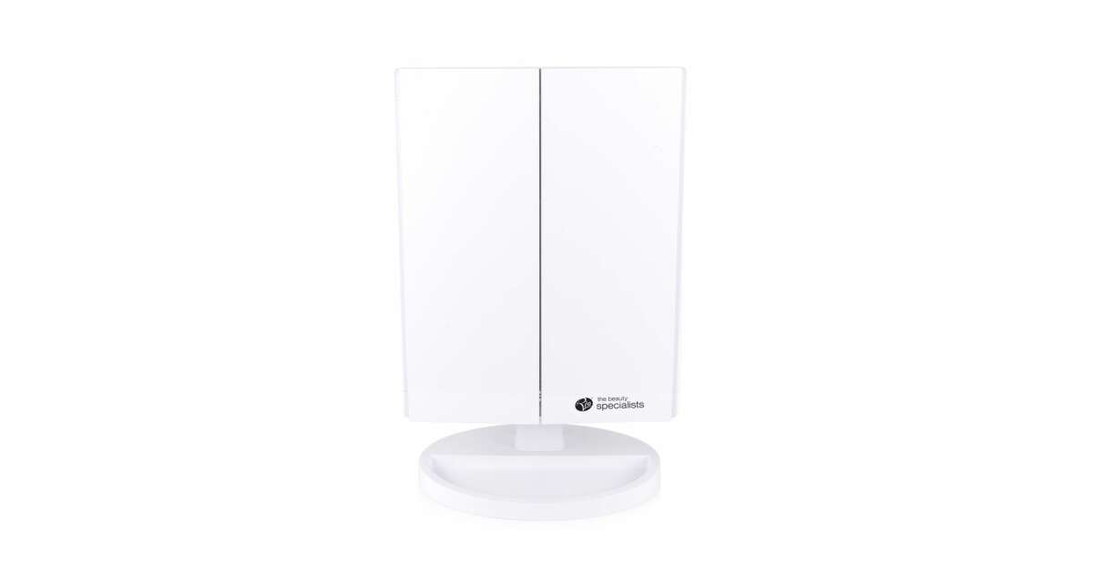RIO MMFS sklopivo kozmetičko ogledalo, LED rasvjeta, nagib, rotacija 360°, 1x, 3x, 5x, 10x zoom, 4xAAA/USB, bijelo