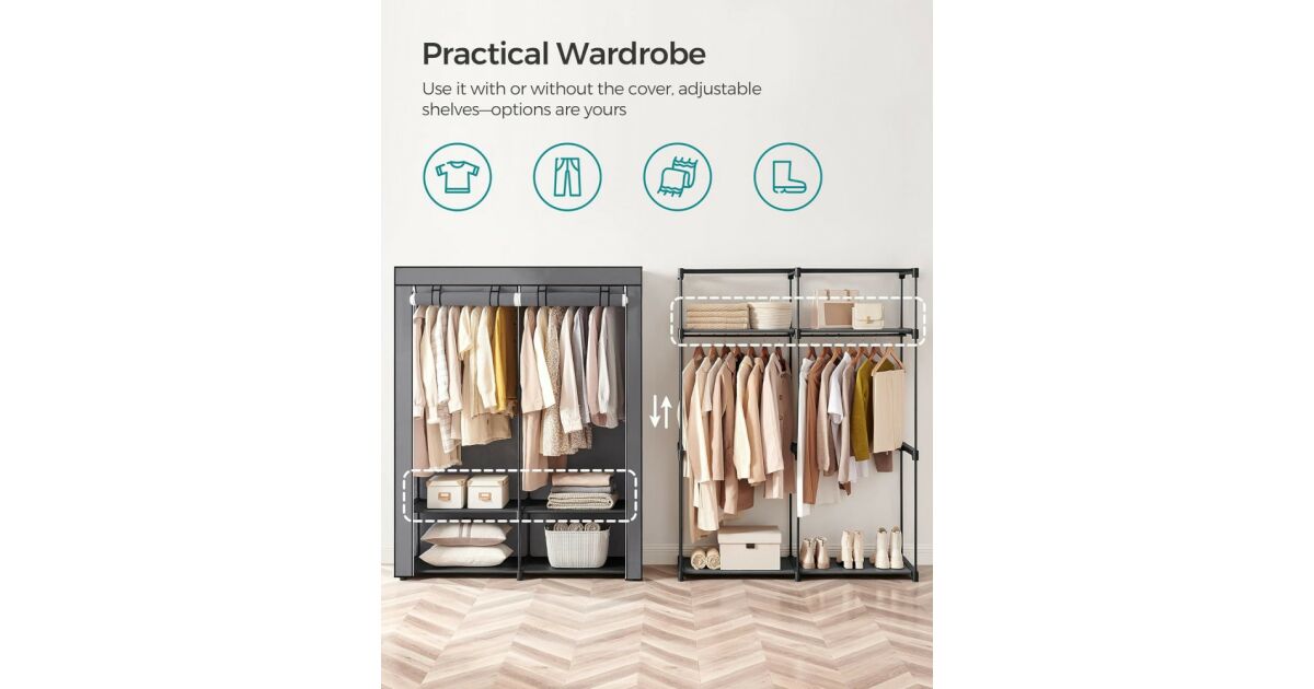 Organizator za odlaganje odjeće, mobilni platneni ormar s vješalicama 140 x 43 x 174 cm, sivi | SONGMICS mišljenja