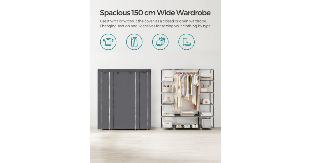 Ormar od tkanine, ormar za odlaganje odjeće, siva | SONGMICS s opisom
