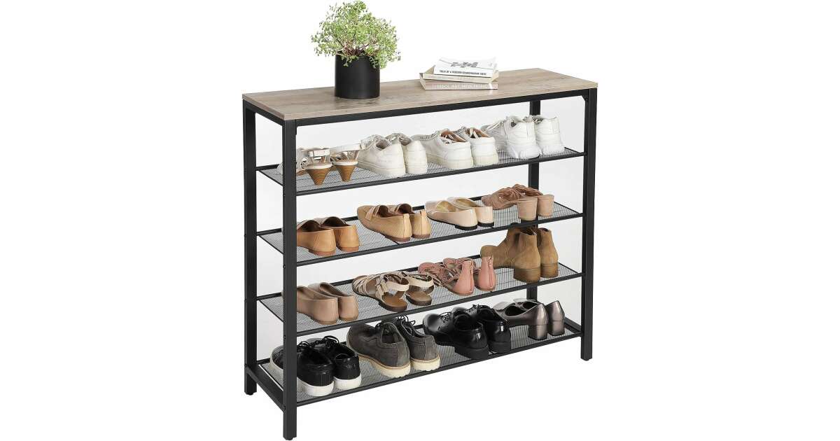 VASAGLE Stalak za cipele - 4 police - Industrijski stil - 100x30x92cm 👞