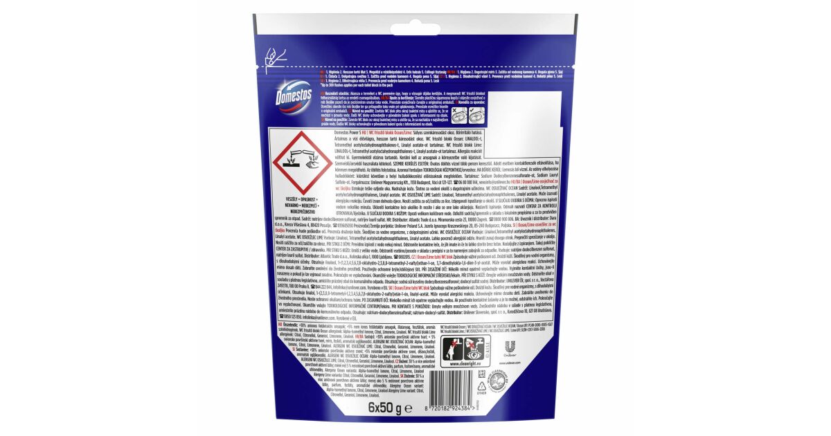Domestos Power5 WC osvježivač pomaže u održavanju čistoće WC-a i očuvanju svježeg mirisa nakon svakog ispiranja. Ovo praktično, veliko pakiranje (18 komada) u mirisima Lime i Ocean osigurava dugotrajnu svježinu i higijenu.