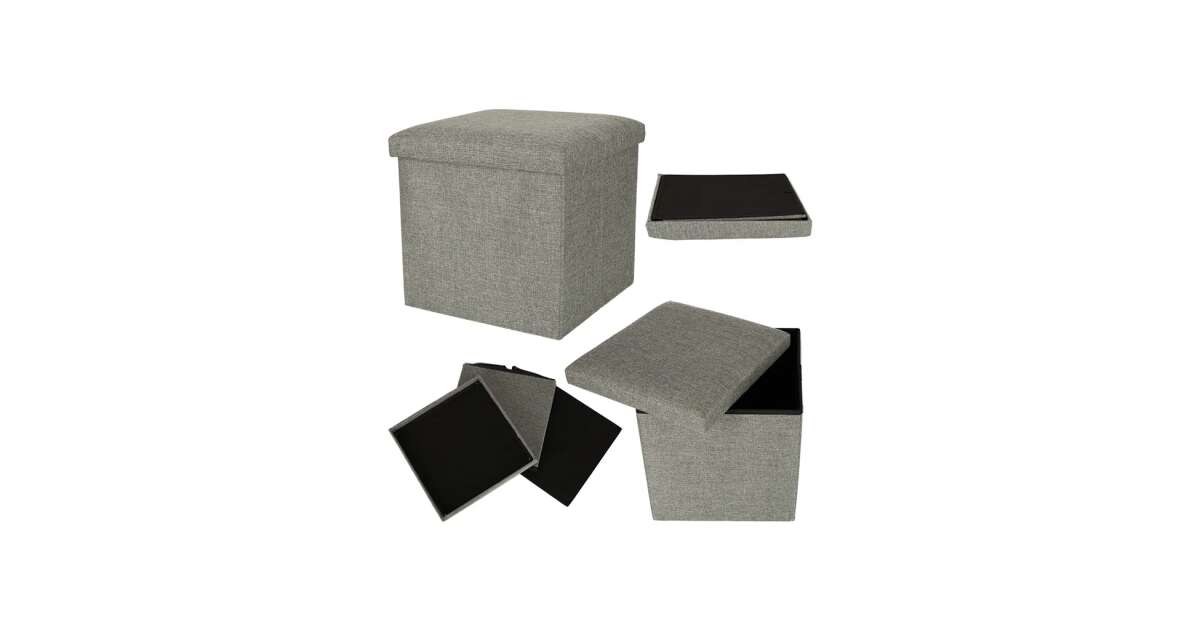 Preklopiva Puff s Spremištem, Siva, 38x38x38cm s opisom