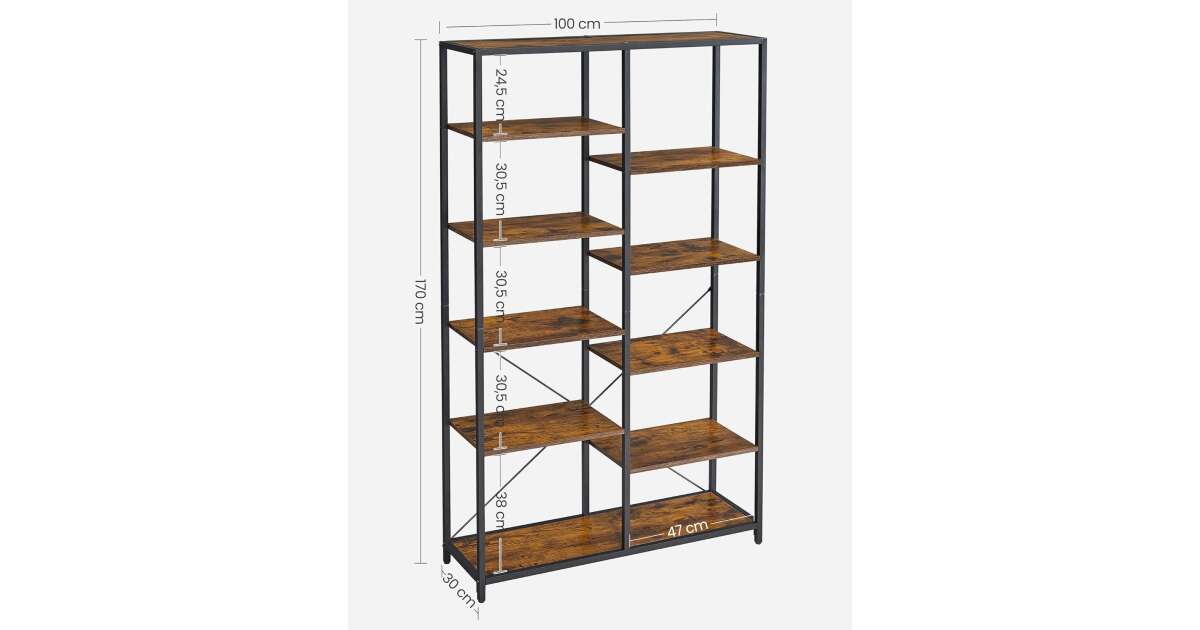 VASAGLE Industrijska Polica za Knjige: Prostrano spremište s 10 odjeljaka