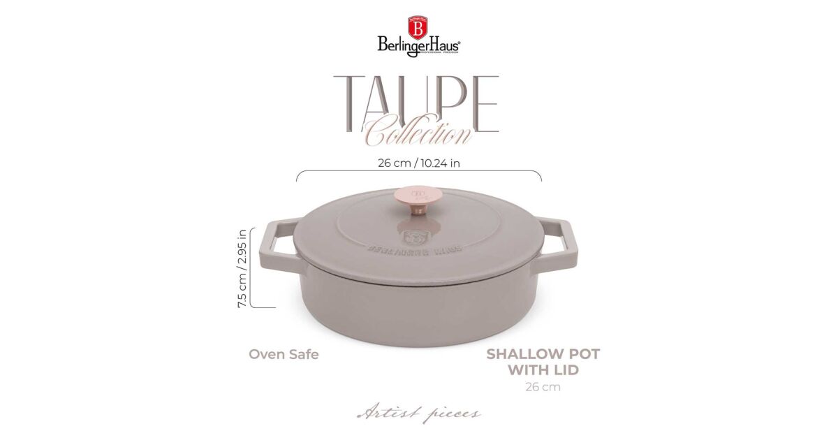 Berlinger Haus BH-6527 Taupe Collection Niski lonac od lijevanog željeza 26cm - Taupe s opisom