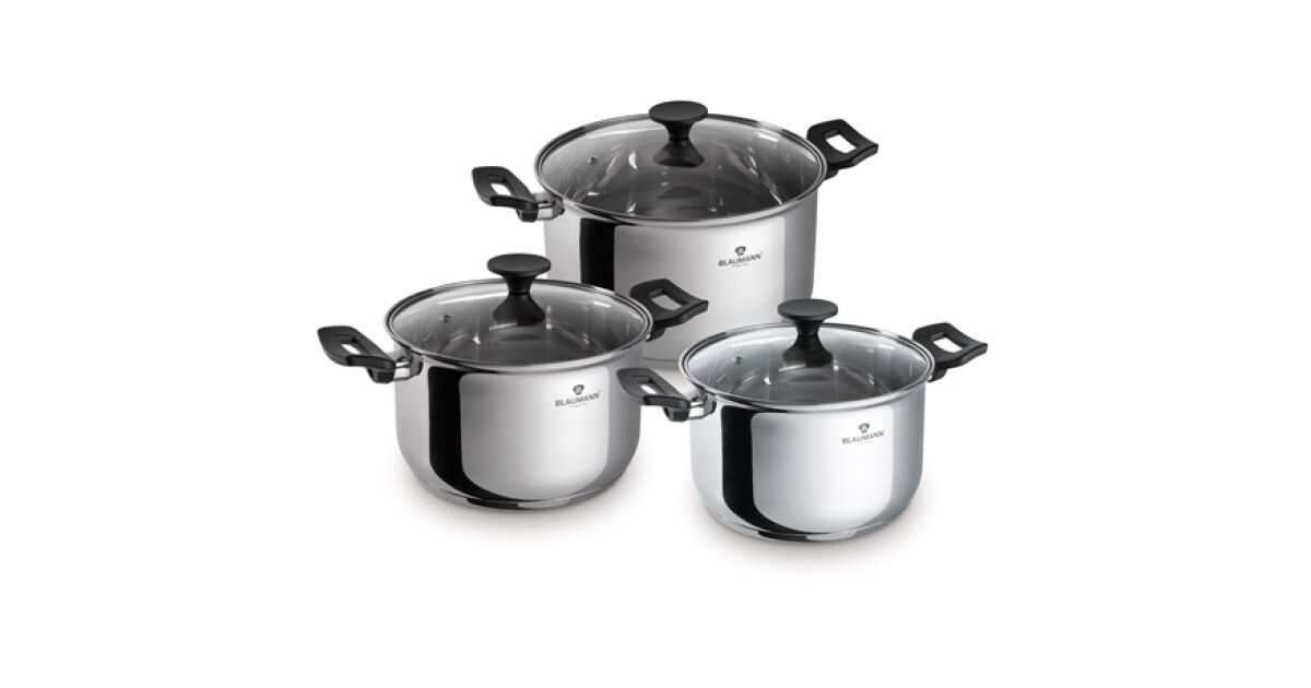 Blaumann Gourmet Line Set Posuda od Nehrđajućeg Čelika - 6 dijelova, sa Staklenim Poklopcima