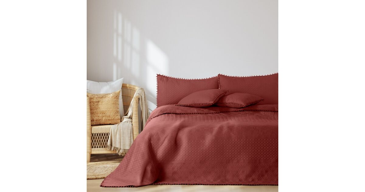 Osvježite izgled svoje spavaće sobe s ovim elegantnim i mekanim MEADORE prekrivačem! Rozi materijal od mikrovlakana i simpatični pomponi daju mu jedinstven izgled, uz ugodnu površinu na dodir.