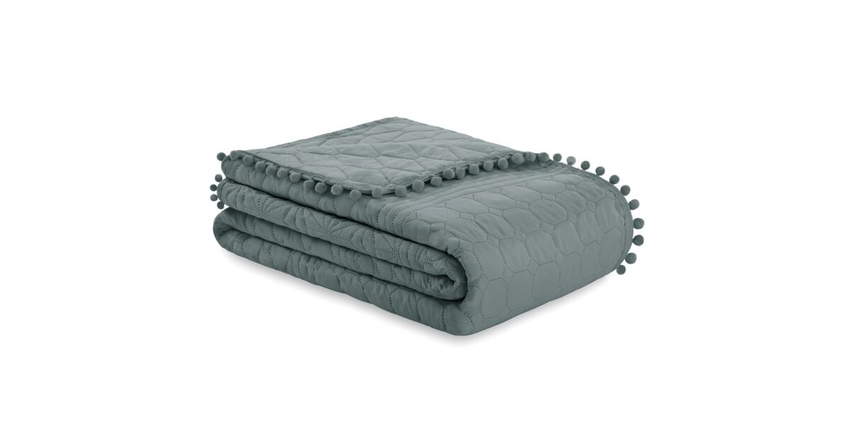 MEADORE sivi prekrivač od mikrovlakana s pomponima - 170x210 cm 🛏️