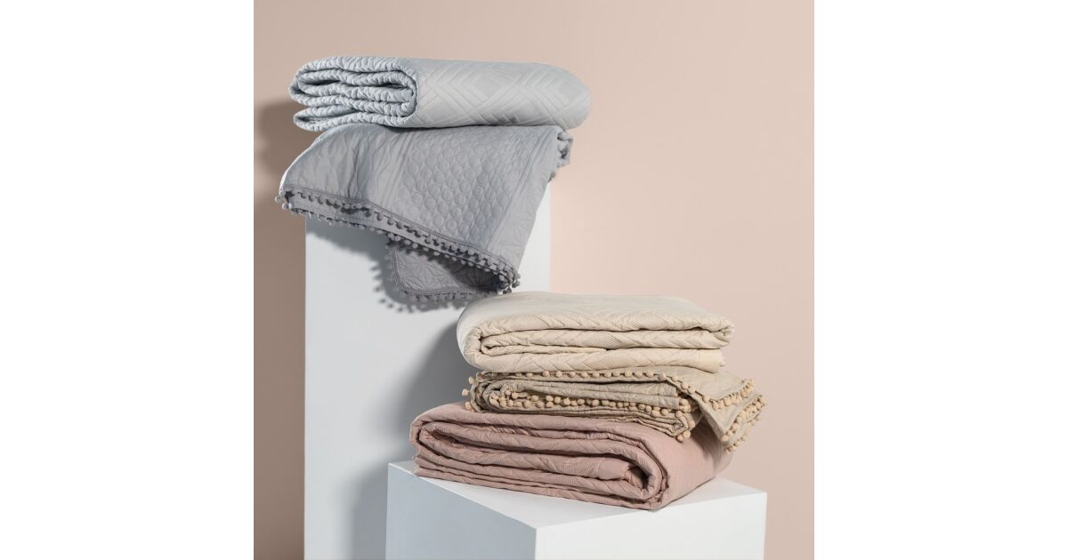 Osvježite atmosferu svoje spavaće sobe ovim mekanim i elegantnim MEADORE prekrivačem! Sivi materijal od mikrovlakana ugodan je na dodir, a rub s pomponima daje mu jedinstven i šarmantan izgled.