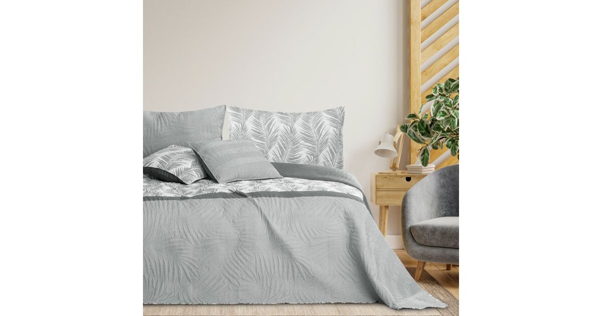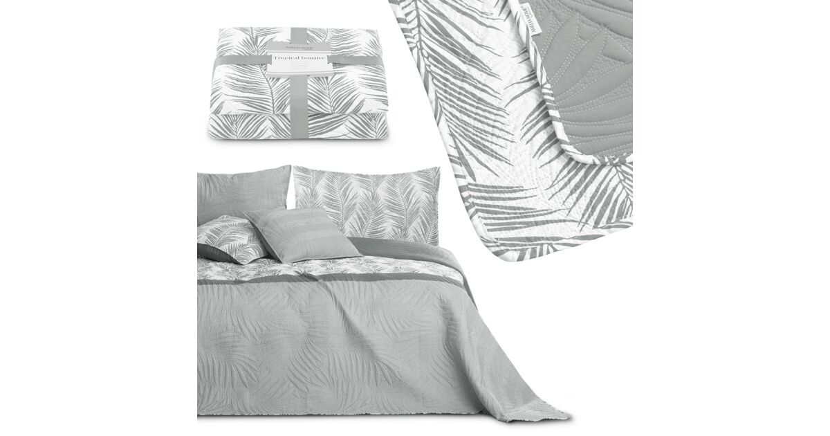 Prekrivač TROPICAL BONAIRE sivi tiskani moderni mikrovlakna 260x280 AmeliaHome