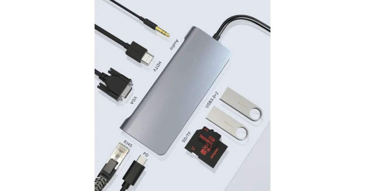 IKATAK 9 u 1 adapter, USB-C na HDMI 4k 30HZ, 2 X USB-A, audio, TF/SD, USB-C, VGA, LAN RJ45, kompatibilan s Apple Macbook Air i Apple Macbook Pro