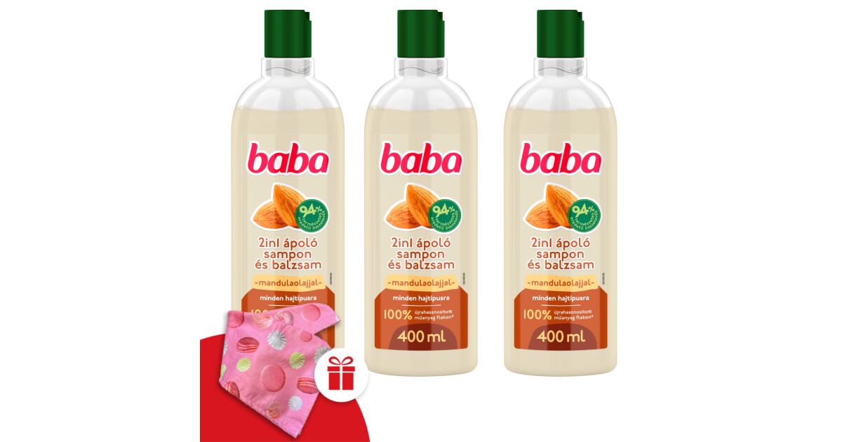 Baba 2in1 Šampon i regenerator s uljem badema za sve tipove kose 3x400ml + Poklon Baba turban za kosu s opisom