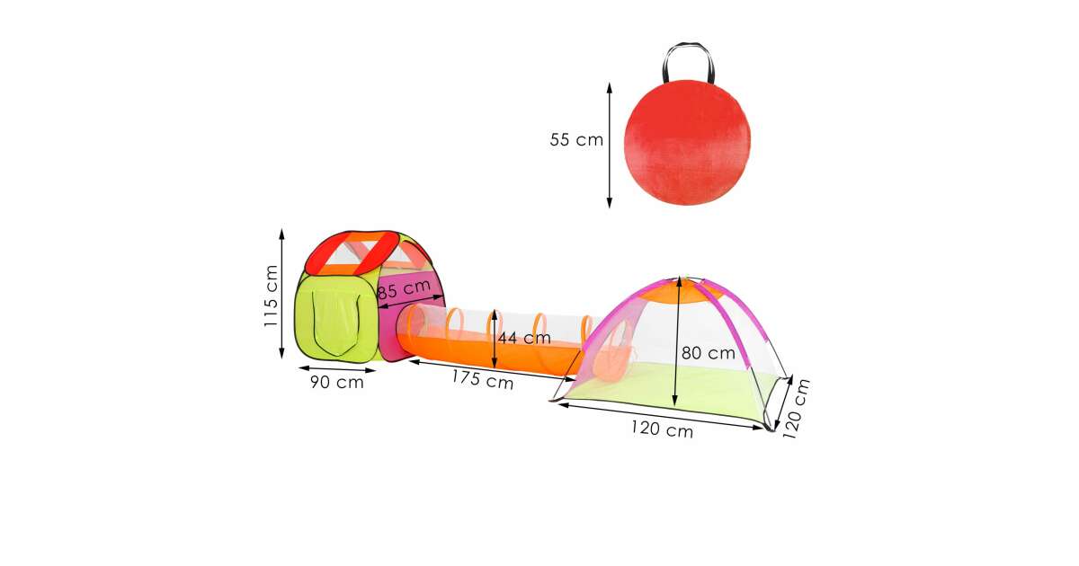 Ova vesela, šarena igraonica s tunelom je savršeno mjesto za dječju maštovitost, bilo unutra ili vani! Zahvaljujući jednostavnoj, sklopivoj konstrukciji, postavlja se i sklapa u tren oka, pa je lako spremiti i prenositi.