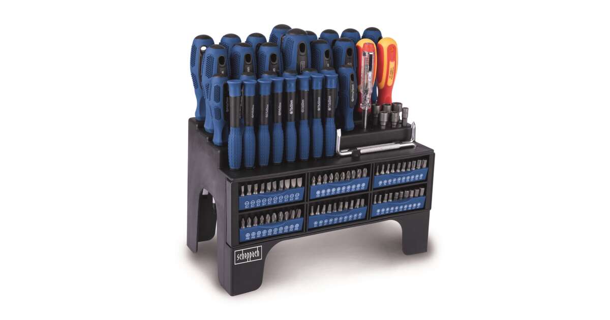 Scheppach SDB 100-2 Set odvijača i bitova: 100-dijelni set alata s praktičnim stalakom