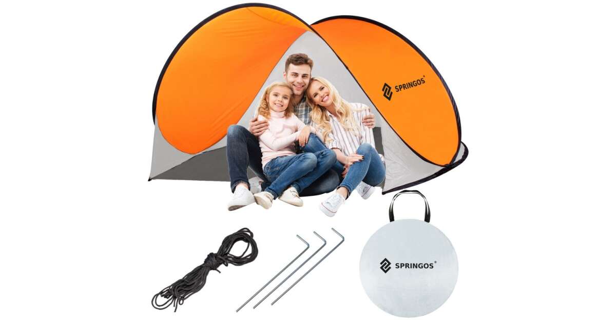 Ovaj lako postavljiv Springos šator za plažu idealan je izbor za opuštanje na plaži, piknike ili odmor u vrtu. UV50 zaštita materijala brine se da vi i vaša obitelj budete sigurni od štetnih sunčevih zraka. Šator se postavlja u trenu zahvaljujući praktičnom pop-up mehanizmu, tako da možete odmah uživati u ugodnoj hladovini.