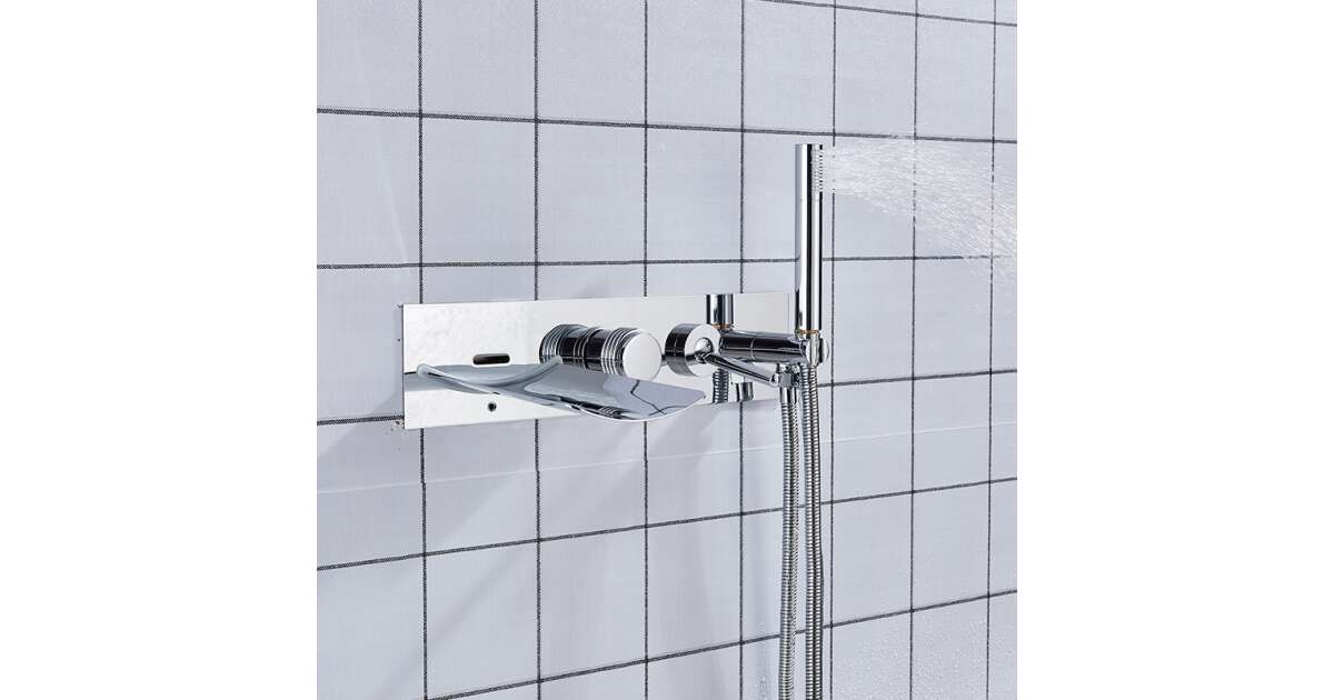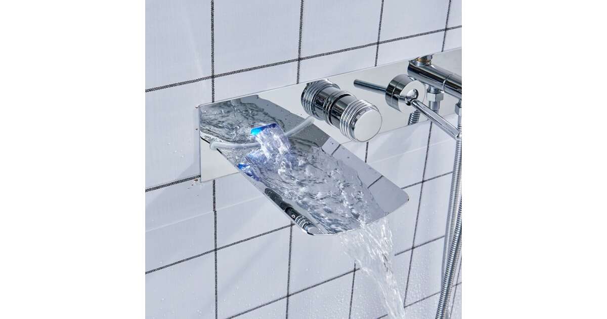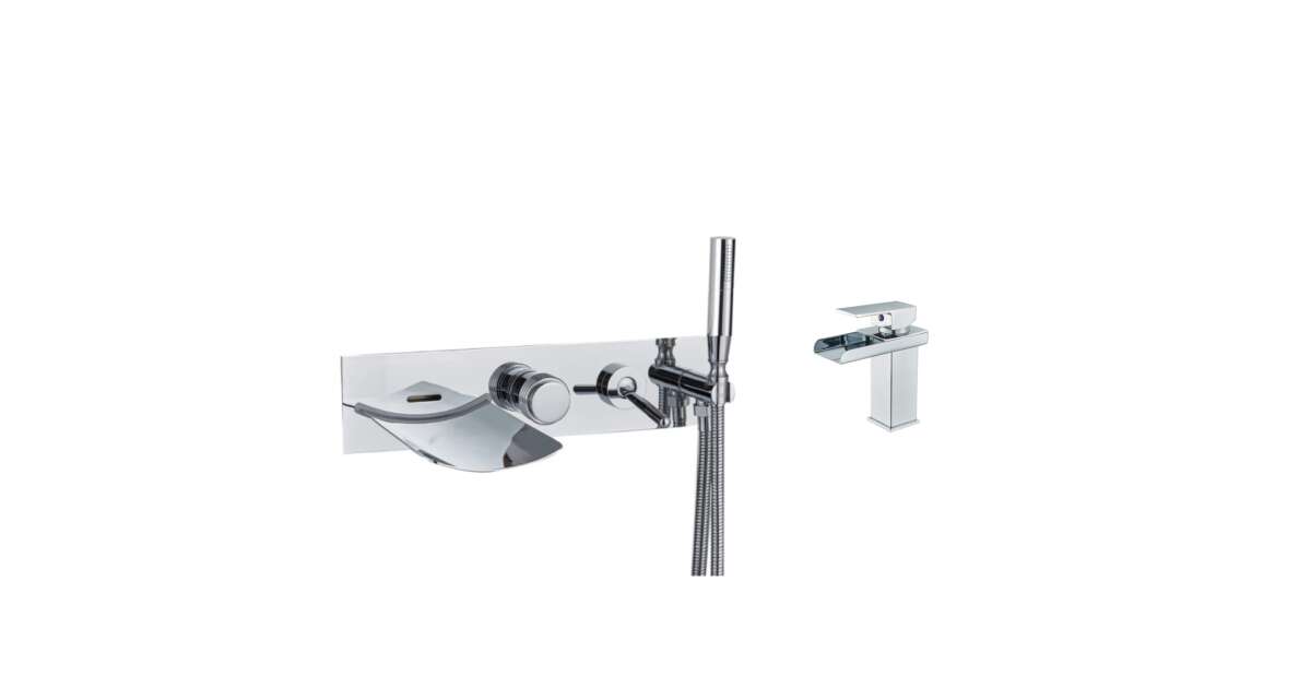 Set slavine za kadu i slavine za umivaonik, model nordijske inspiracije, u sjajnoj krom boji.