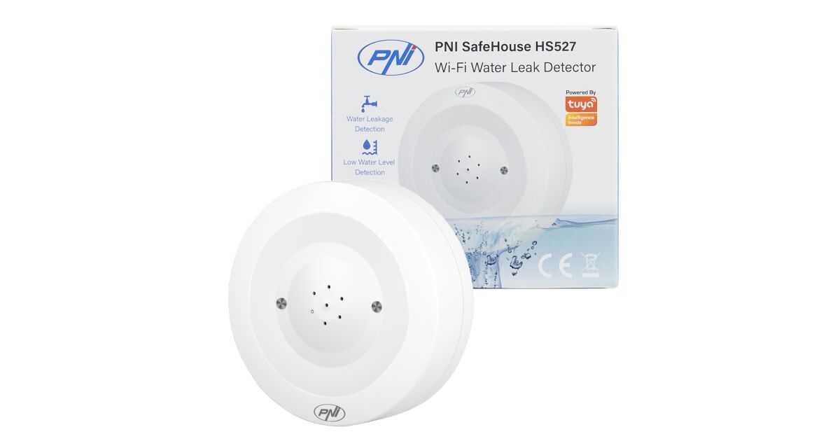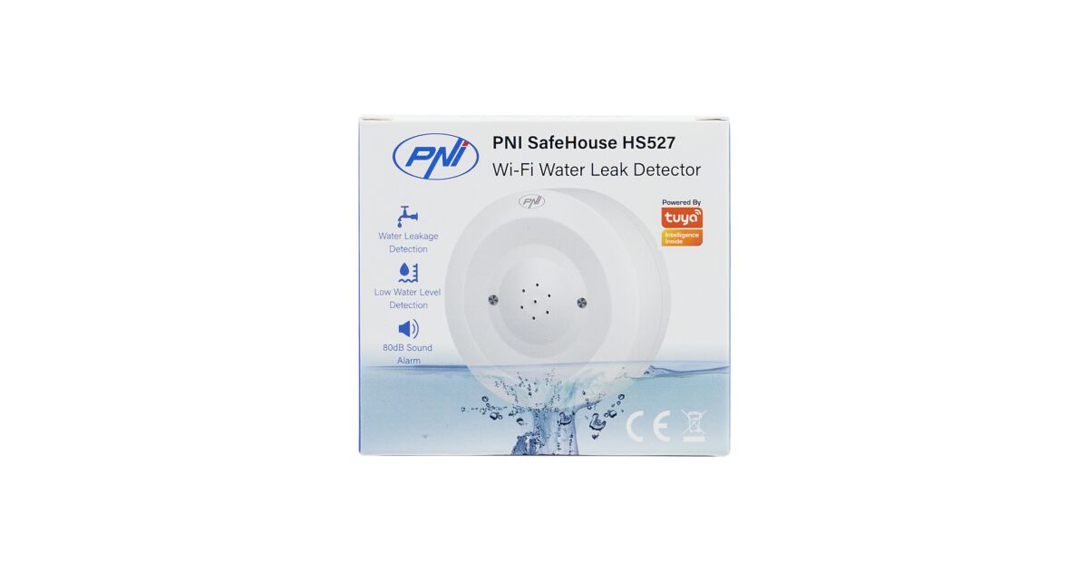 PNI SafeHouse HS527 senzor poplave detektor s Wi-Fi, sa 80dB zvučnim alarmom, ugrađenim zvučnikom, za poplave i kapanje, kompatibilan s Tuya aplikacijom, 3V napajanje s opisom